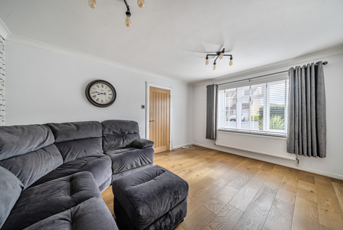 As you arrive, you’re welcomed by a large driveway providing ample off-road parking. Step inside to find a convenient downstairs WC, followed by a bright and spacious lounge, enhanced by large windows that flood the room with natural light.