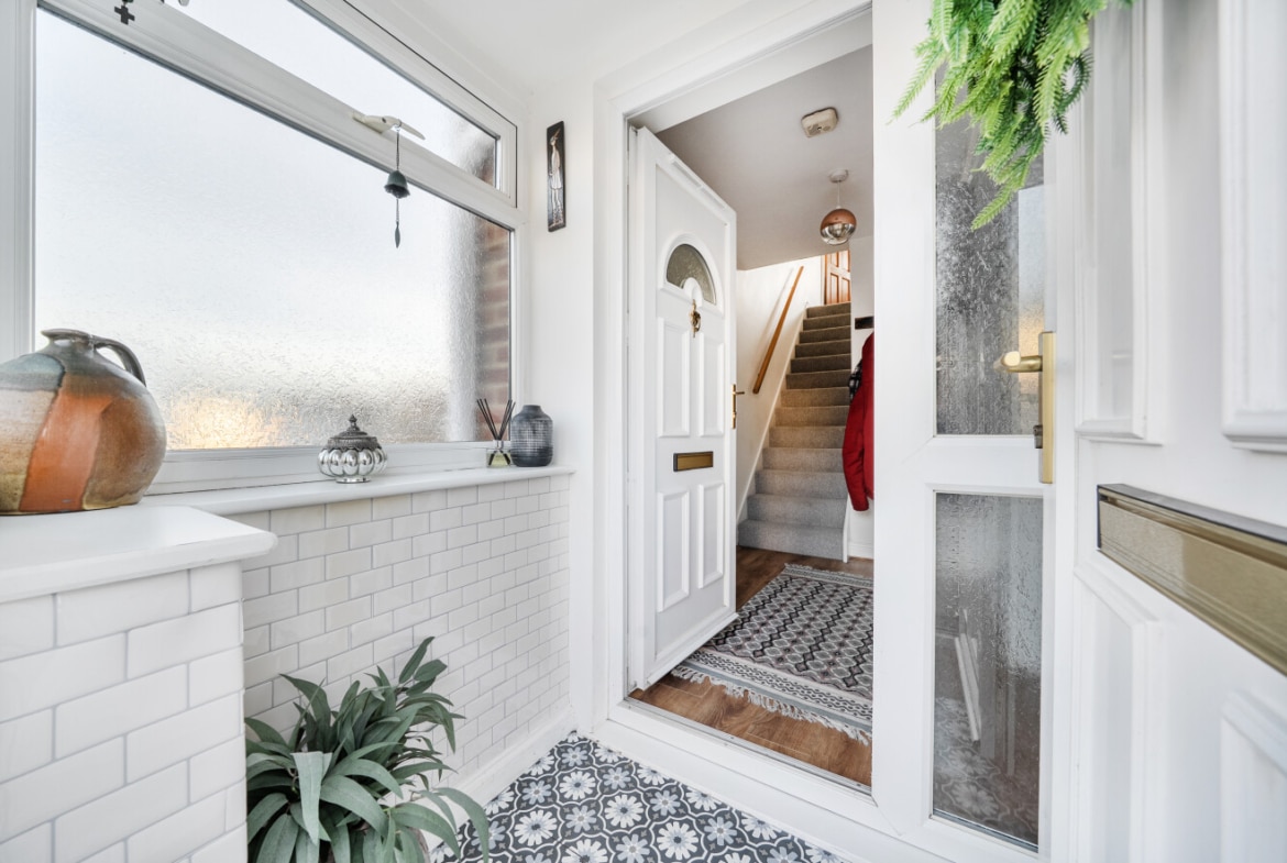 The property benefits from a driveway to the front providing parking, along with a garage positioned to the side offering additional storage or secure parking inside or on the additional side drive. Upon entering, you are welcomed into a beautifully decorated entrance hall, setting the tone for the rest of the home.