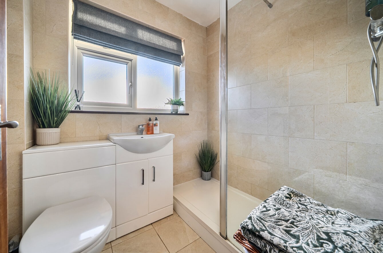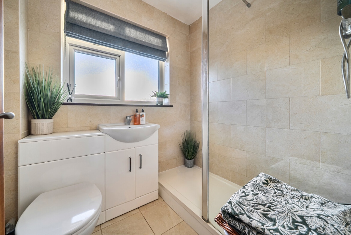 Upstairs, the property features a modern, fully tiled double shower room, along with three well-proportioned bedrooms, all of which are good-sized.