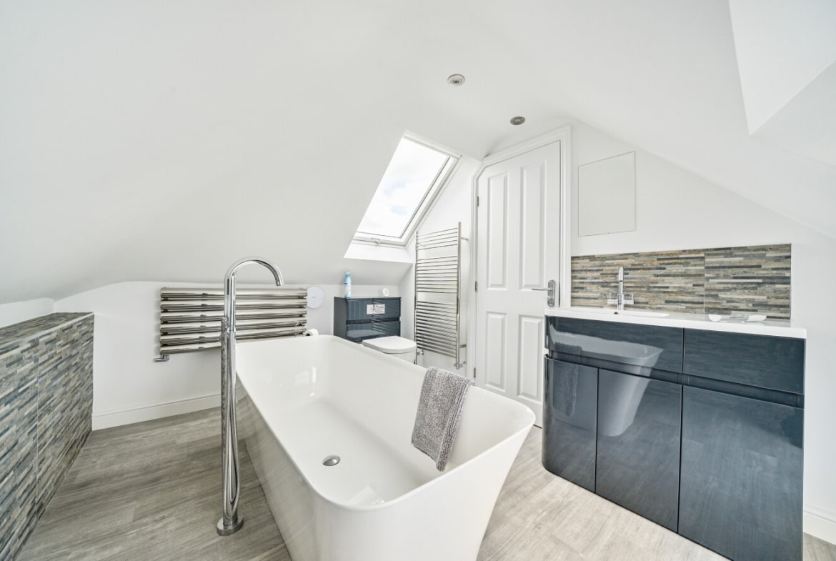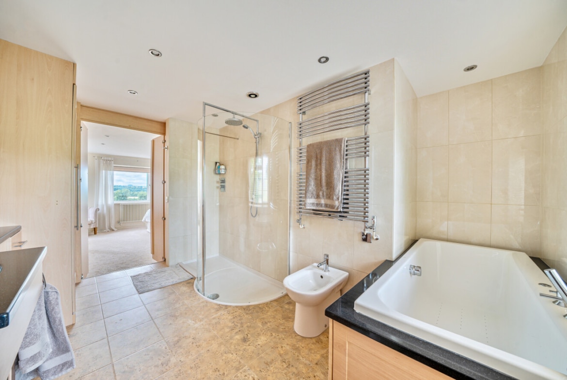 Upstairs, the first floor offers three double bedrooms, all with en-suites. The principal bedroom features a sizeable en-suite with a full-sized bath and double shower, while a first-floor study provides the perfect work-from-home space. The second floor houses a further spacious bedroom with a newly refitted en-suite.
