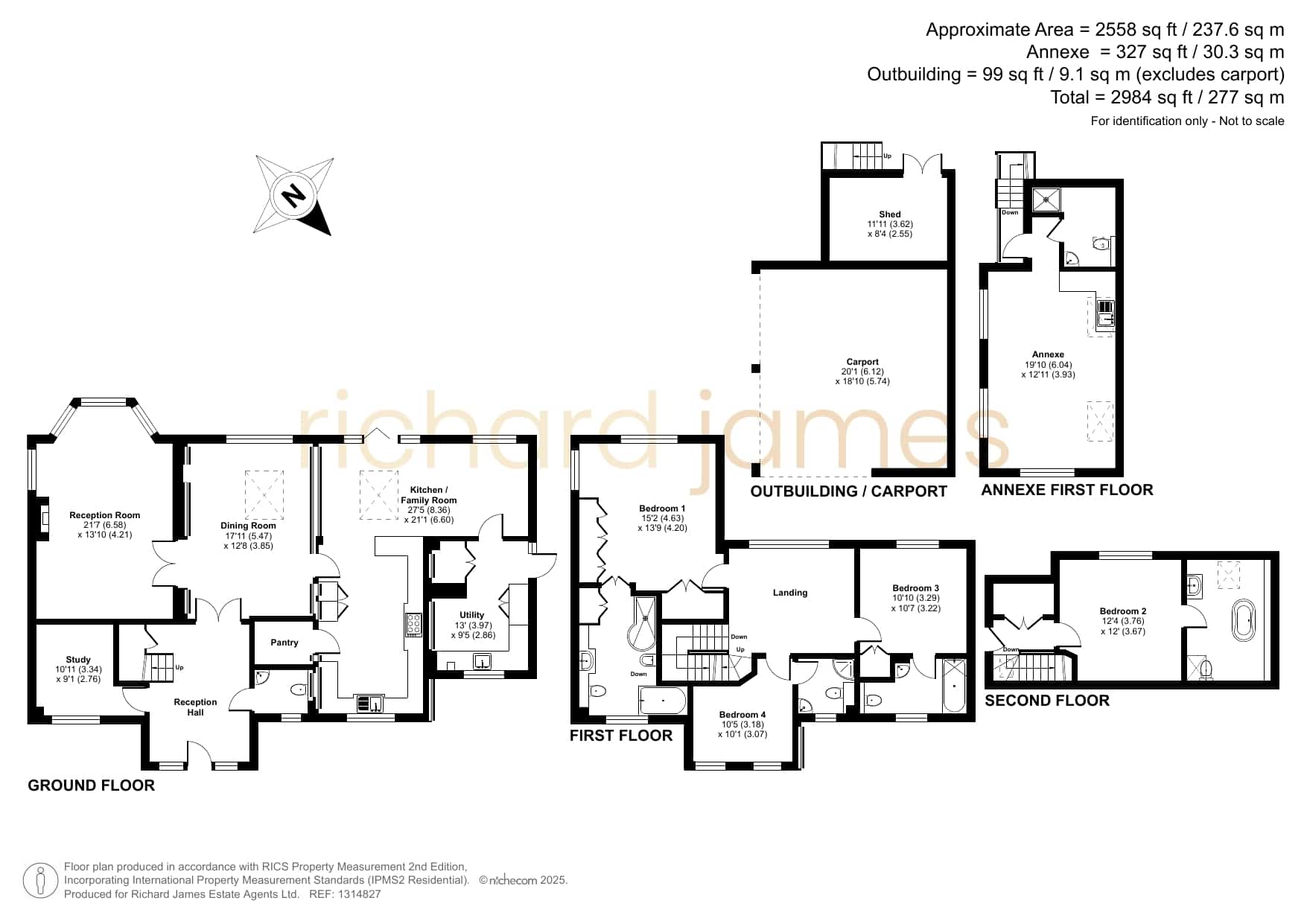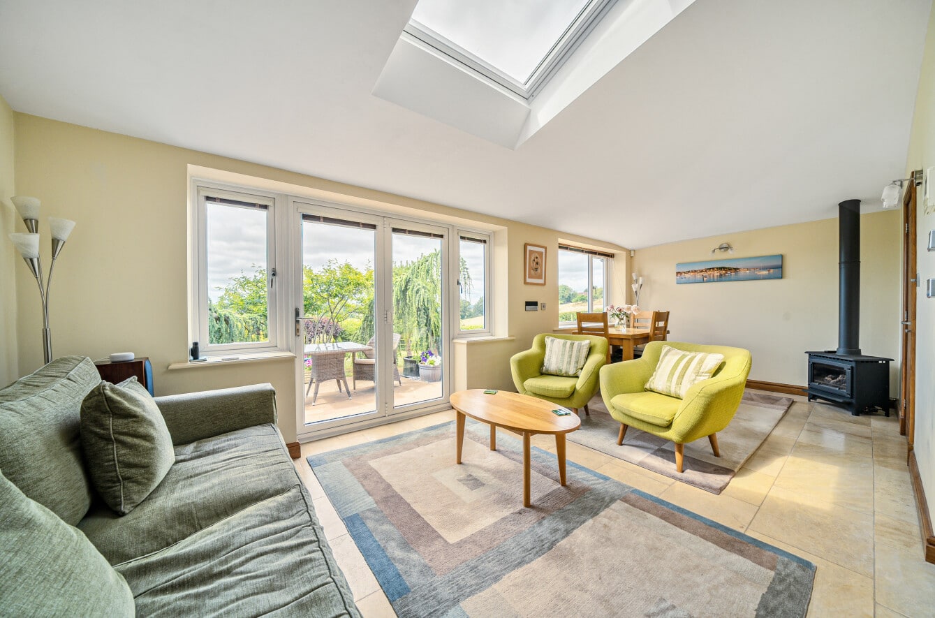 Designed by the current owners with a strong emphasis on light, flow, and connection to its idyllic surroundings, the property spans approximately 2,500 sq ft over three floors. A separate 300 sq ft detached annex—complete with kitchen and shower room—is currently used as a home office but is ideal for a variety of uses including guest accommodation or a studio.