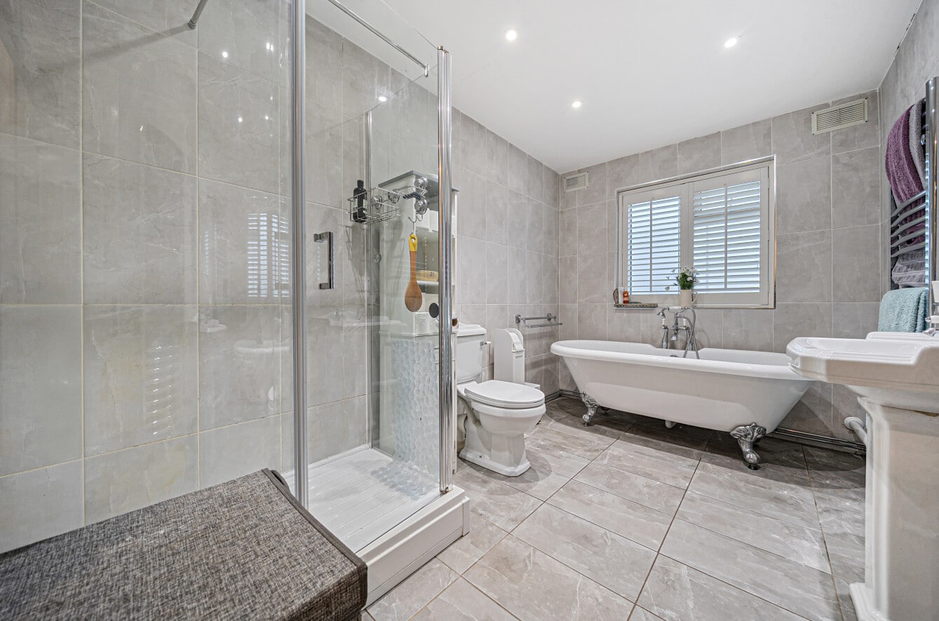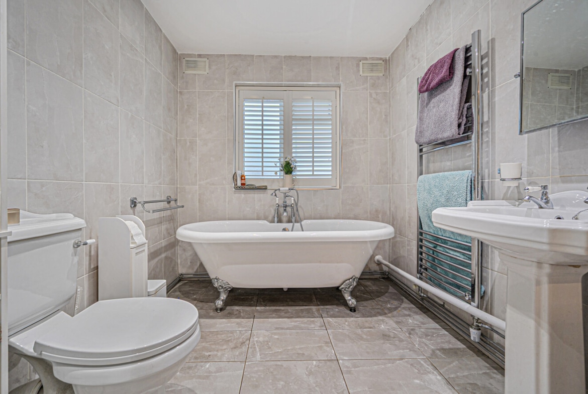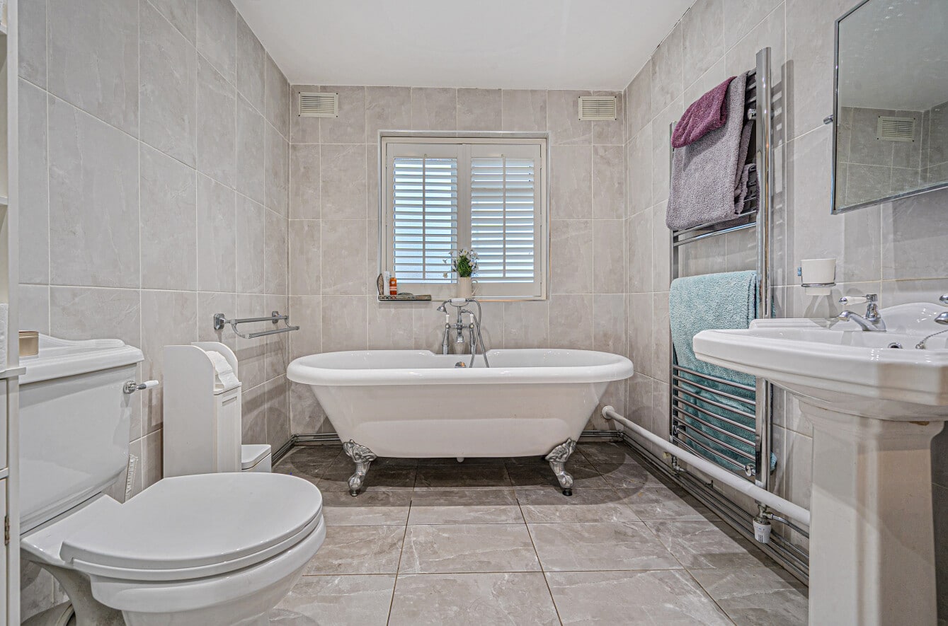 The ground floor also benefits from a practical utility, dedicated office space, two double bedrooms and a family bathroom, boasting roll top bath and separate double shower.