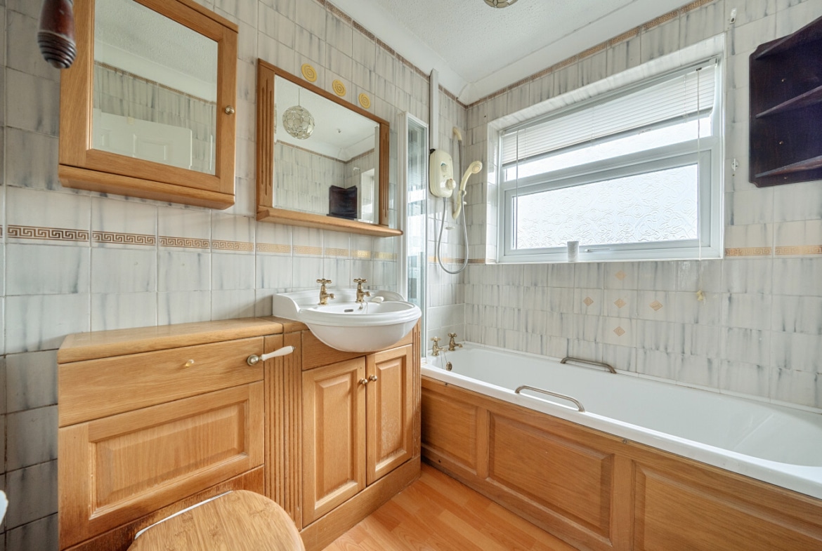 Upstairs comprises three bedrooms—two doubles and a well-proportioned single—along with a family bathroom.