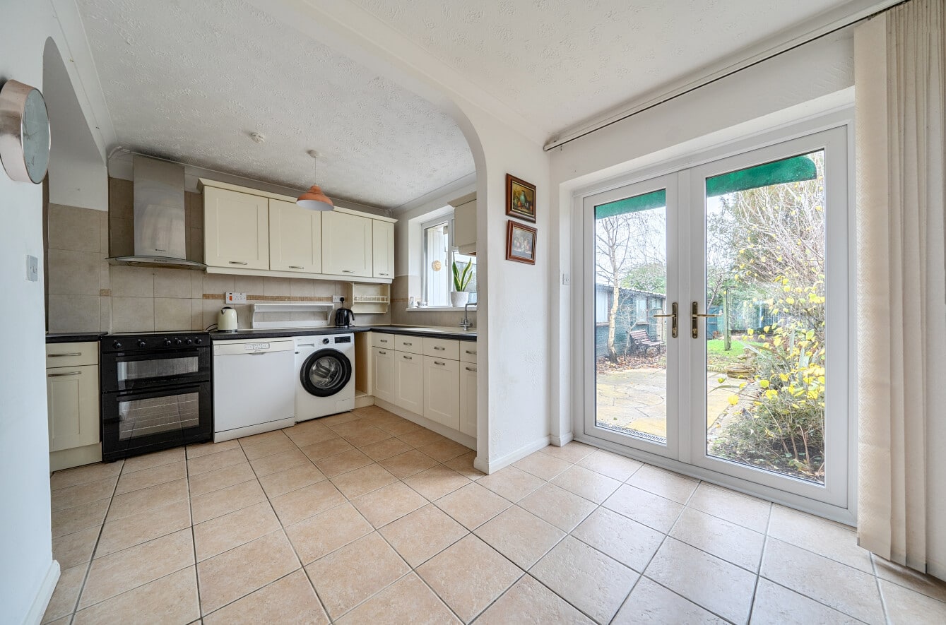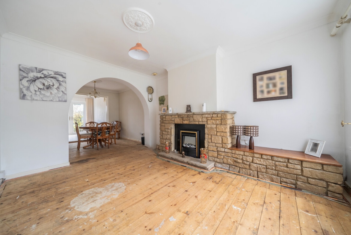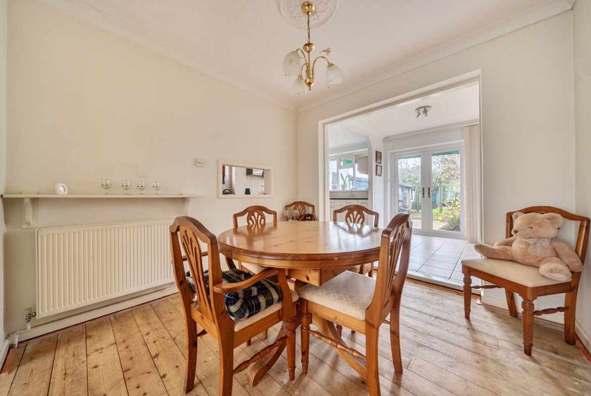The property benefits from a driveway to the front and down the side, leading to a garage. Inside, there is an entrance hall and a lounge/diner to the front. To the rear, a spacious extension creates an excellent area for entertaining, opening into the kitchen to form a bright, open-plan layout. The kitchen offers ample storage and workspace, with doors leading out to the garden.