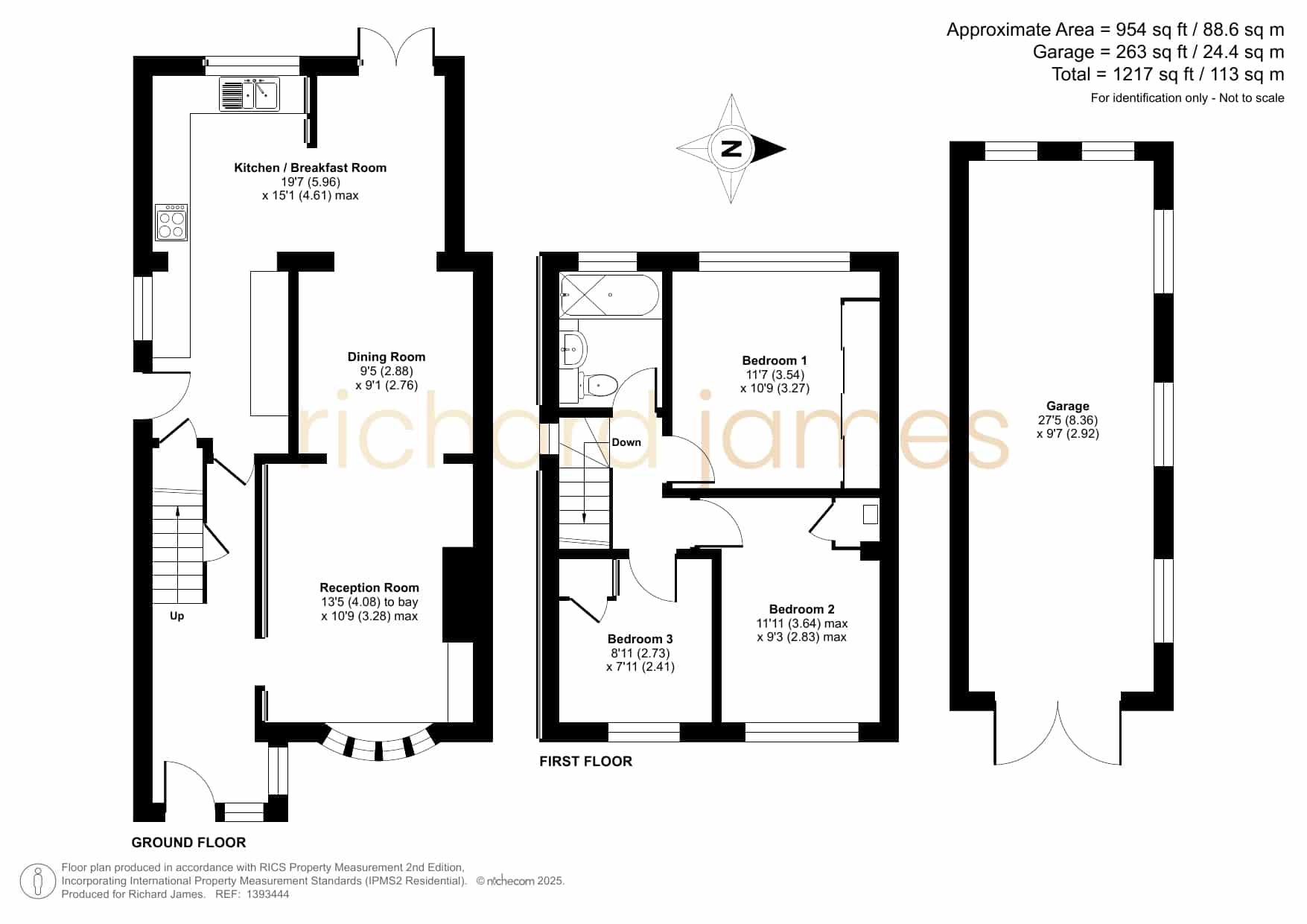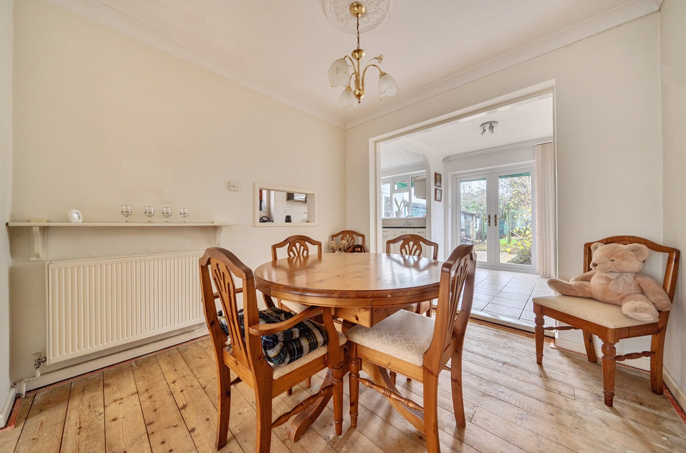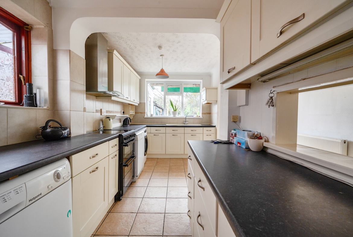The property benefits from a driveway to the front and down the side, leading to a garage. Inside, there is an entrance hall and a lounge/diner to the front. To the rear, a spacious extension creates an excellent area for entertaining, opening into the kitchen to form a bright, open-plan layout. The kitchen offers ample storage and workspace, with doors leading out to the garden.