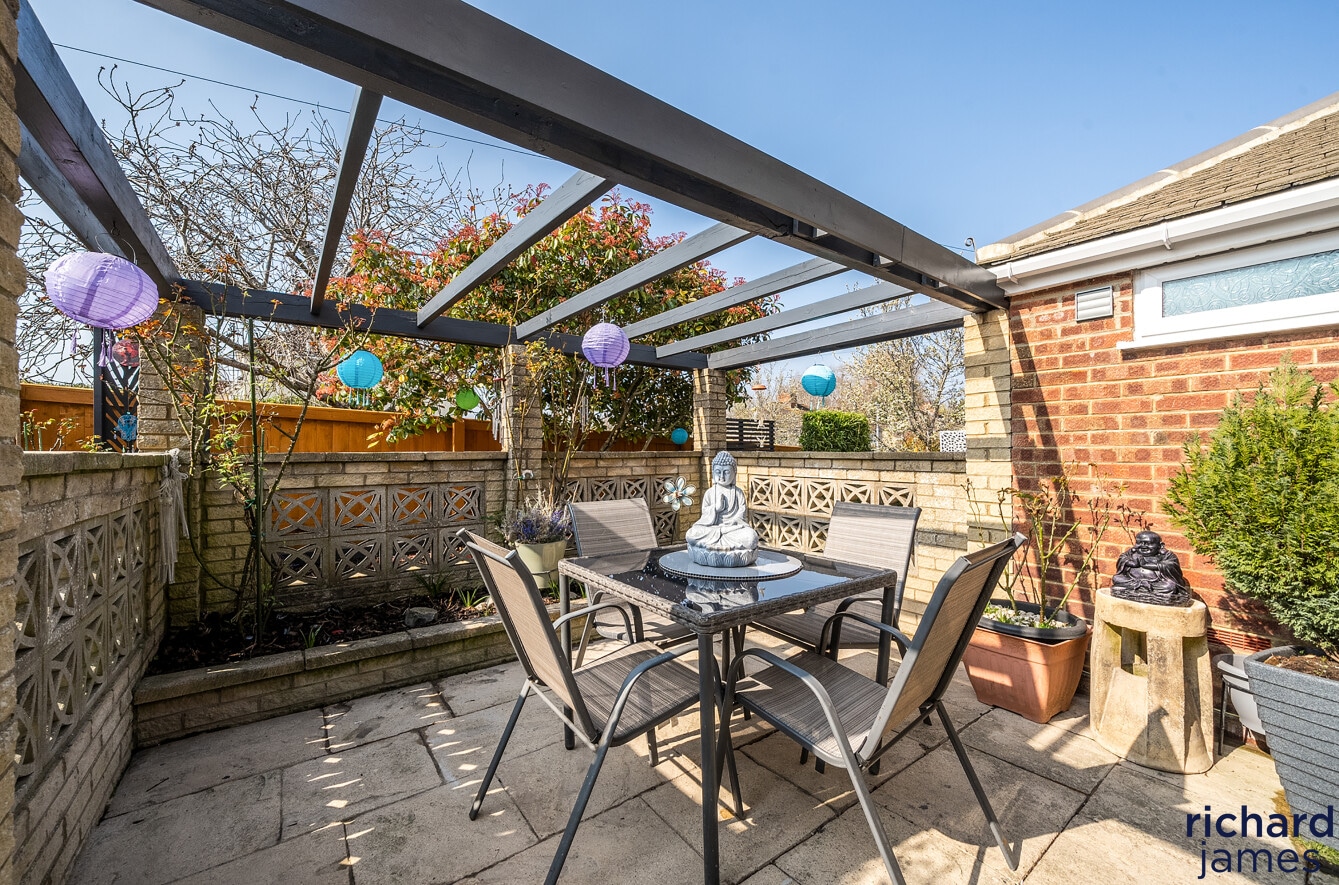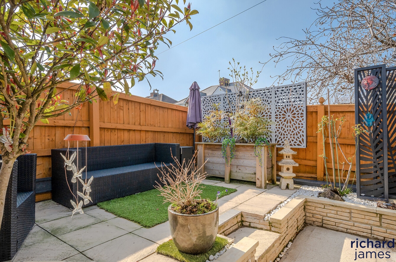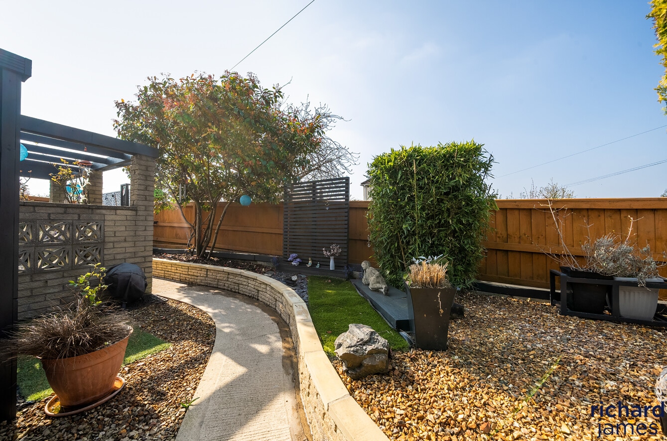 This property has a fully enclosed and private garden which is south facing and wraps around the side of the property. This landscaped garden offers; A range of mature shrubs with a curved Cotswold stone low-level wall. an artificial turf, inset box section fence covering. Two outside taps and wood storage. Range of high-level bright LED lighting throughout. Bespoke privacy screening instated and sun terrace, pergola flagged stoned and BBQ areas throughout. It truely is a perfect place for entertaining and relaxing. There is also access to the garage. The garage is detached and located at the rear of the property and has power and lighting plus an inspection pit, it is larger than an average garage with access coming from Brooklands Avenue and has an electric roller door and a generous driveway offering superb parking infront of it.
