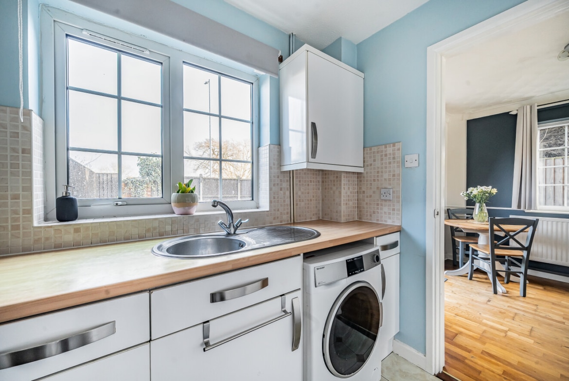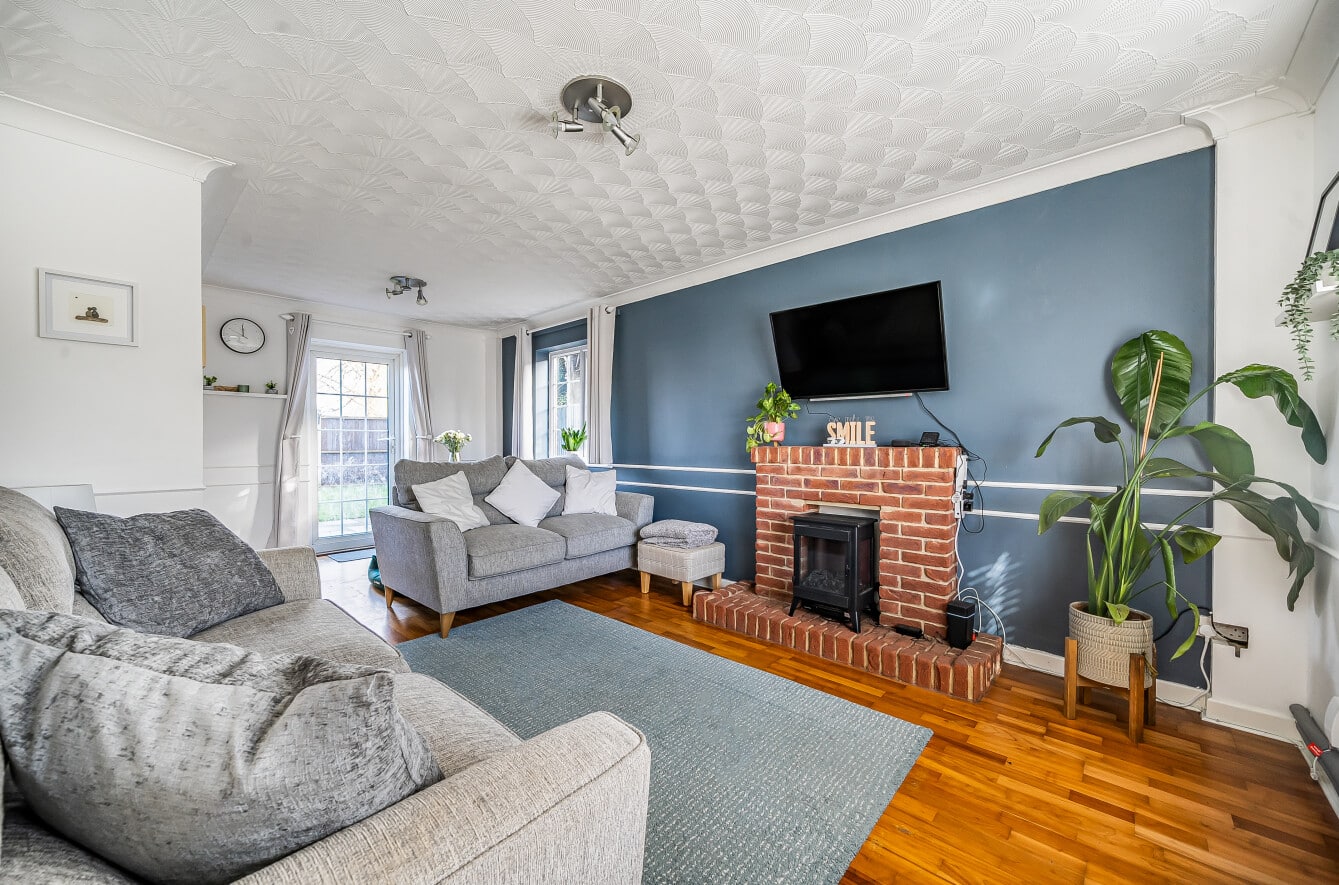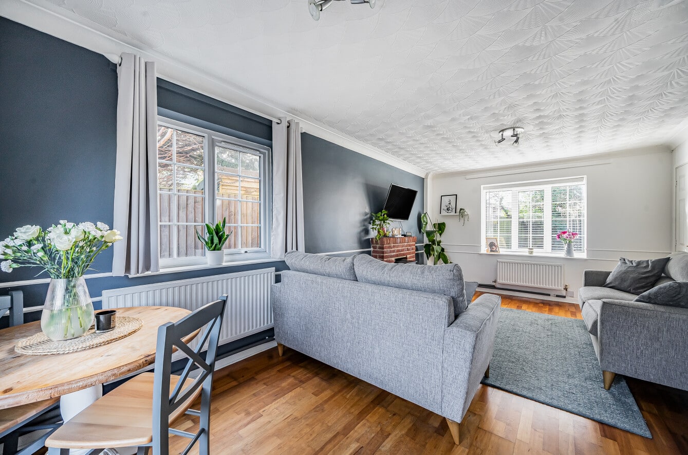 Situated on an end terrace, this property provides privacy with a non-overlooked garden. The outdoor area comprises a front garden as well as a back garden, ideal for outdoor activities and relaxation. Additionally, the property offers a garage and parking space to the side of the row of houses, ensuring ample space for vehicles and storage.