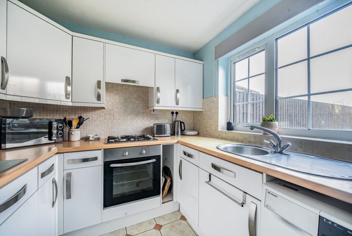 Modern 3-bed end terrace in Nythe. Downstairs loo, family bathroom, open plan lounge-diner with garden access. Overlooks non-overlooked garden, front garden, garage, and parking. Quiet area near schools and shops.