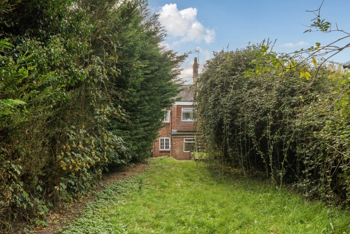 The rear garden is a true highlight – a large, private space with a patio leading to a long lawn, surrounded by mature bushes and trees. Perfect for relaxing, entertaining, or family life.