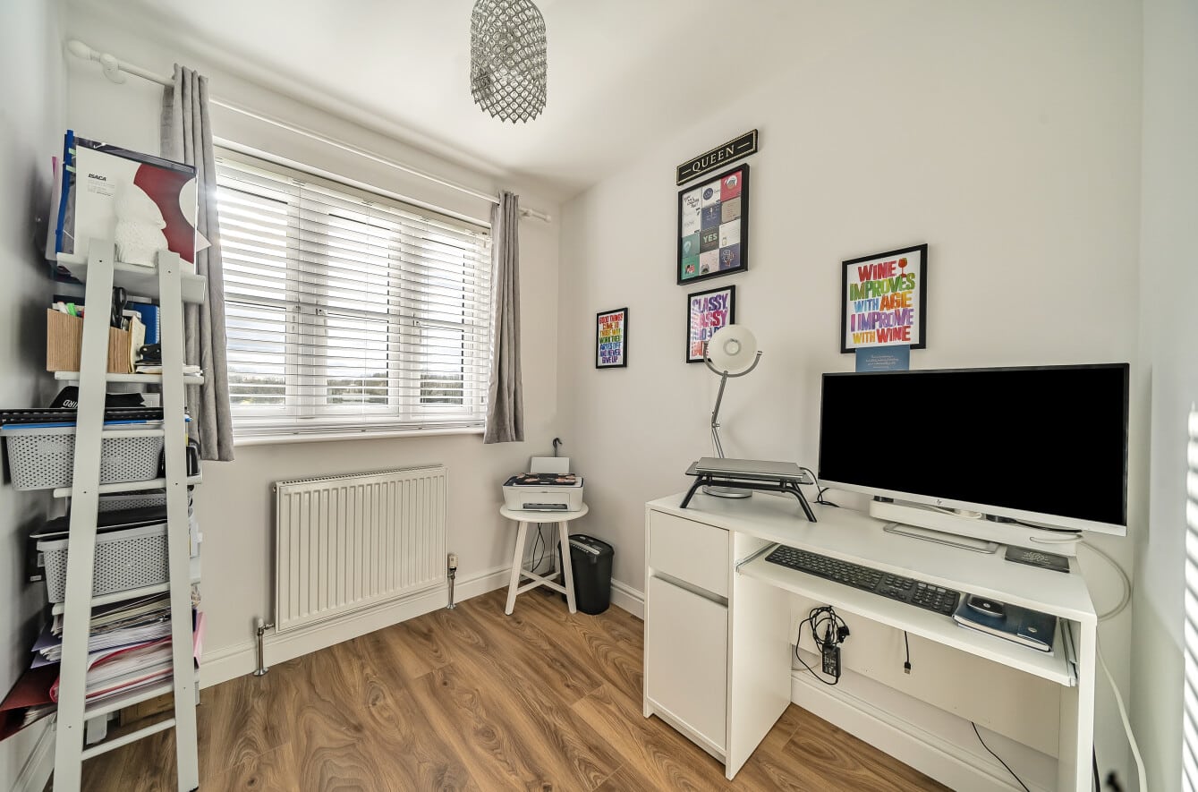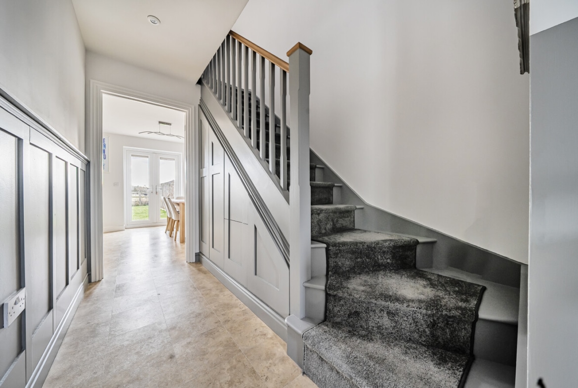Backing onto open fields, the home enjoys a peaceful setting while being within walking distance of Wanborough’s charming pubs, a doctor’s surgery, and local schools. It also offers easy access to scenic countryside walks, as well as the bustling town of Swindon and key transport links for commuters.