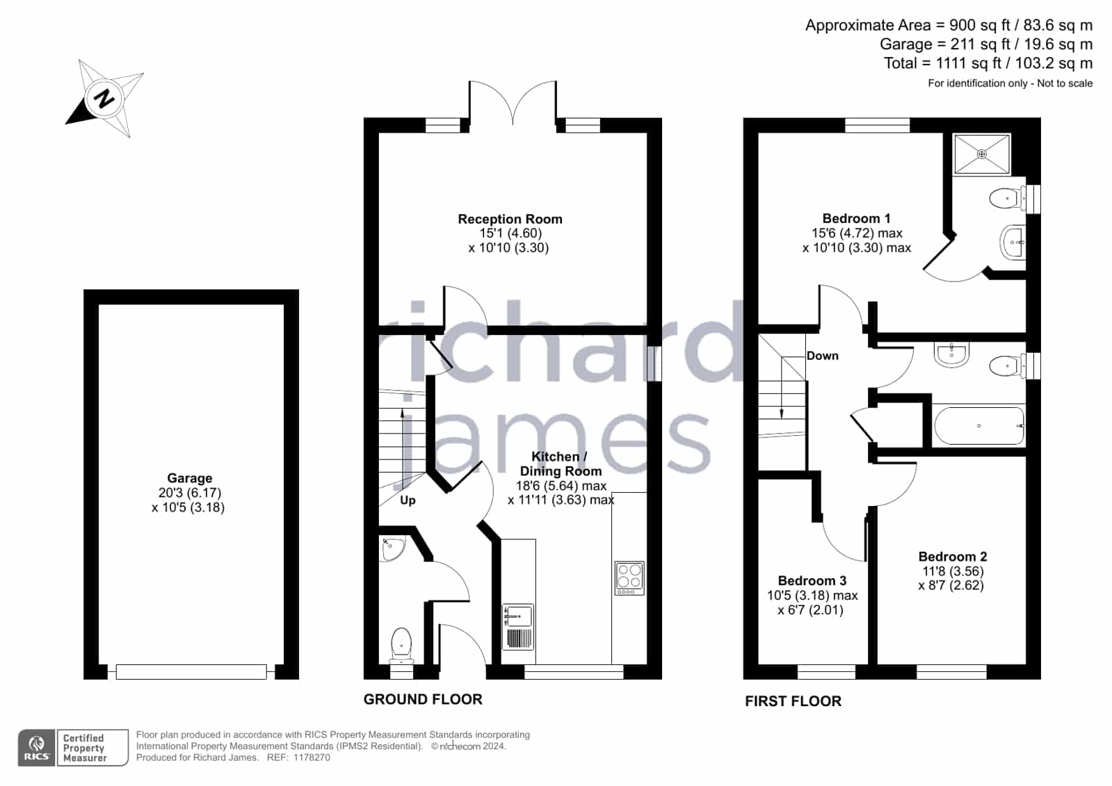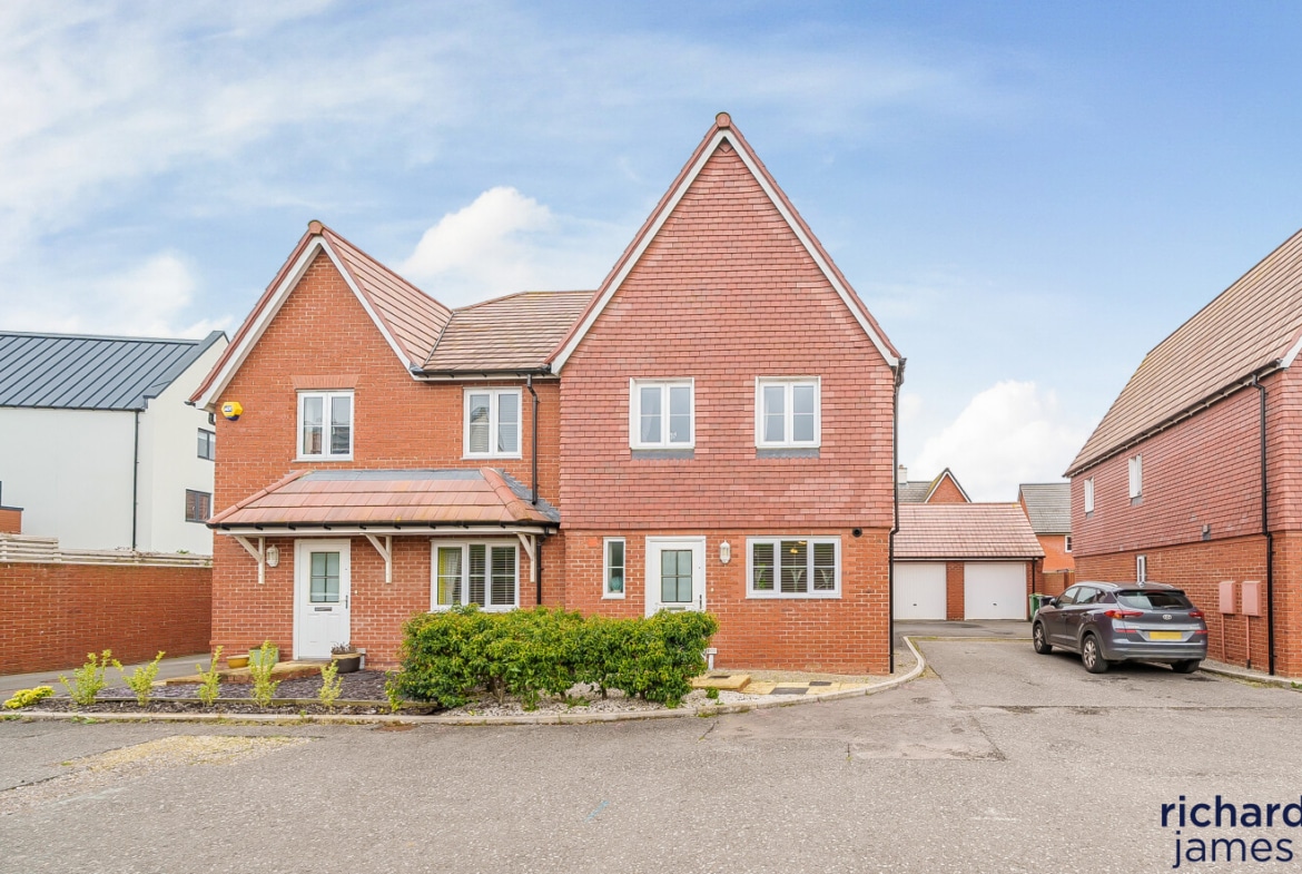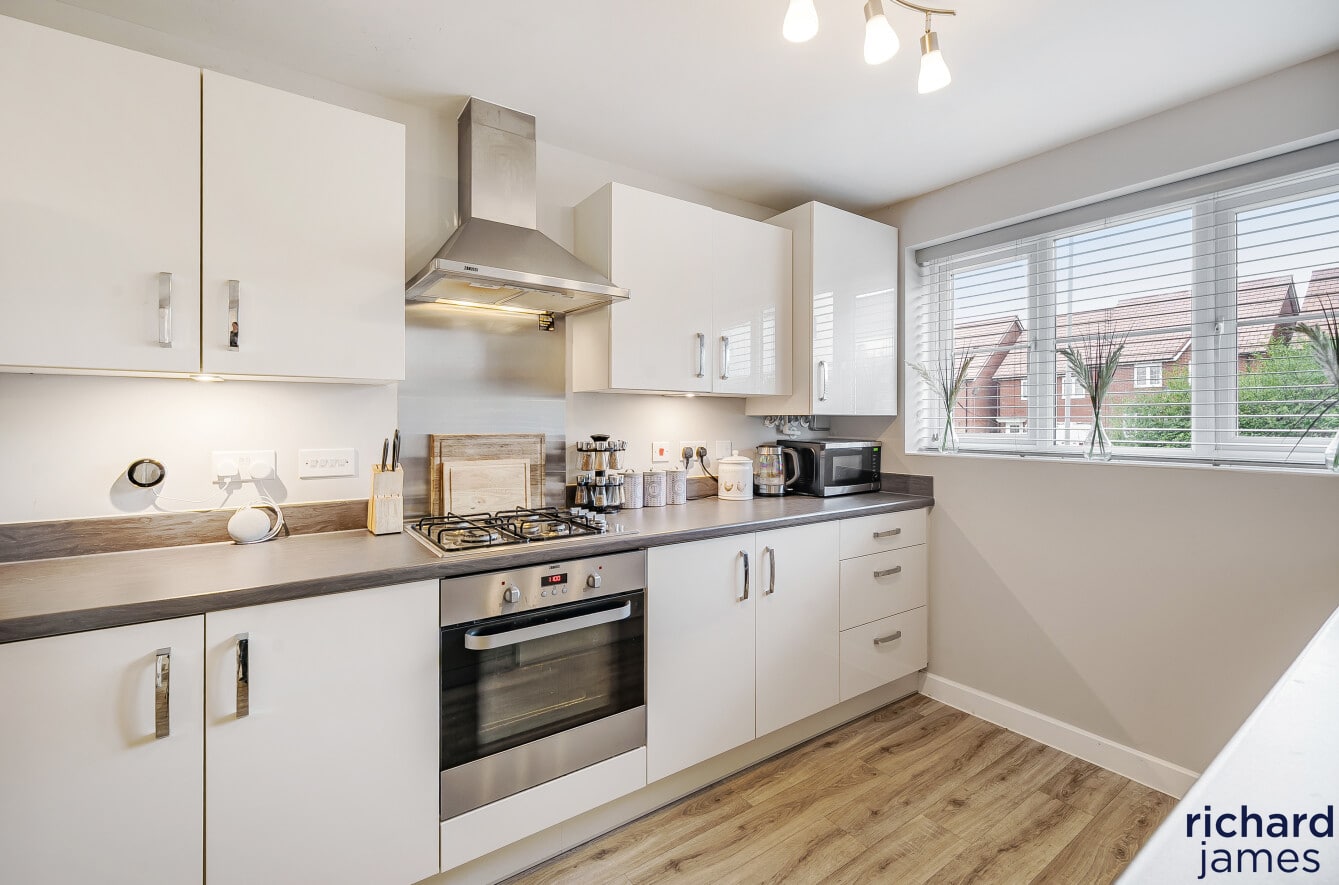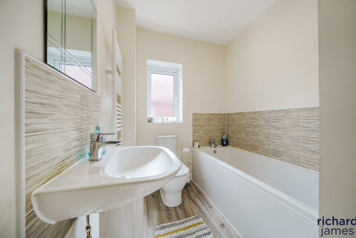 On entry, you’ll find a bright hallway with a convenient WC. The kitchen/diner is a real standout, offering modern finishes and ample space for family dining. To the rear, the full-width sitting room overlooks the garden through French doors, flooding the space with natural light.