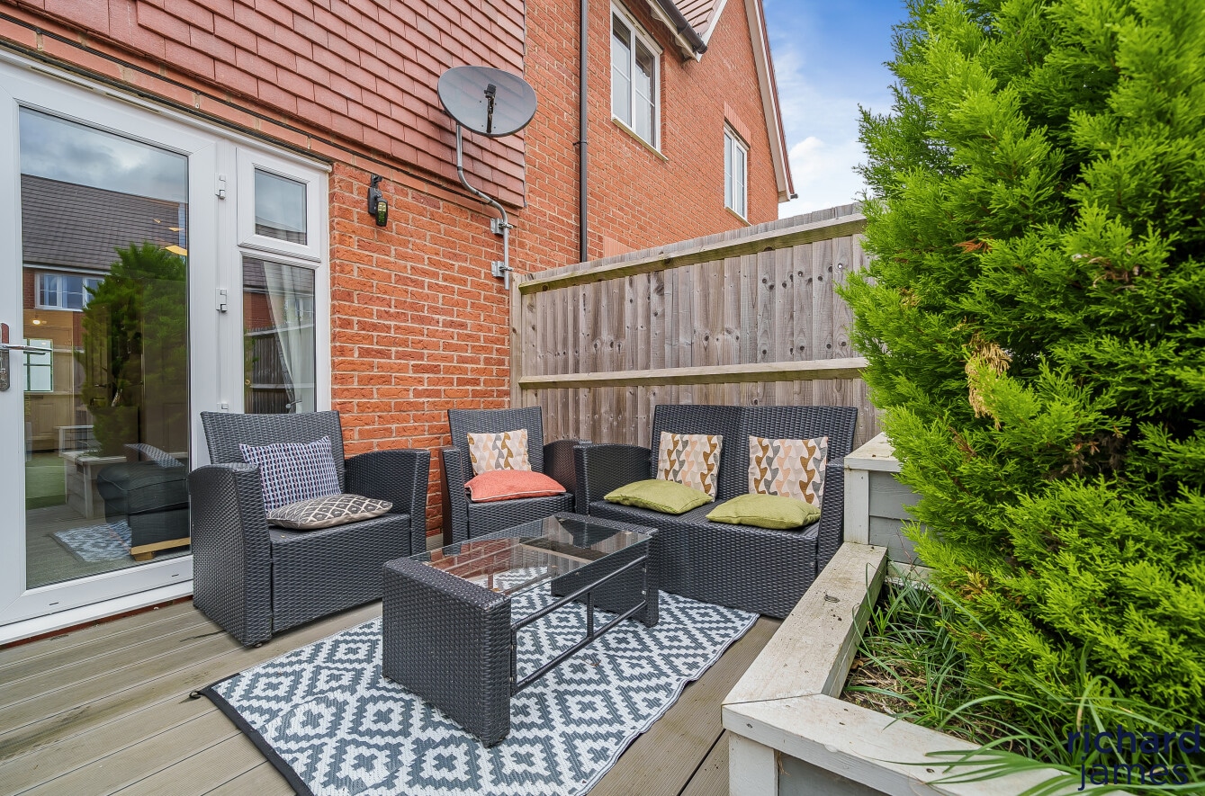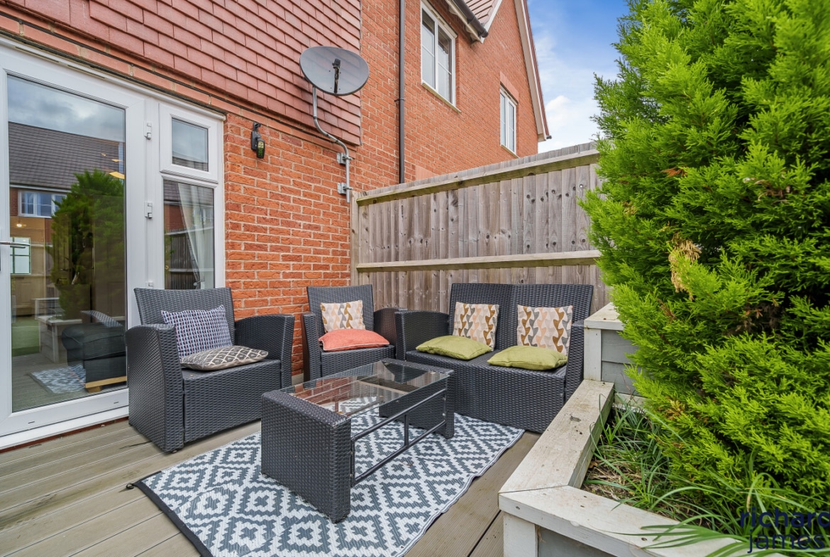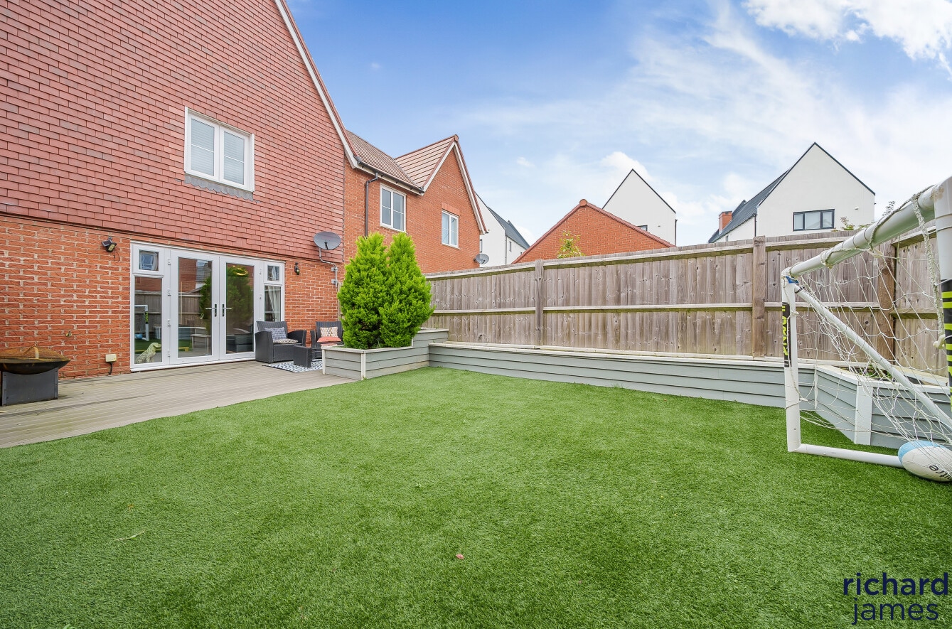 The rear garden is generously sized, offering plenty of outdoor space and landscaped with a combination of decking and artificial lawn, ideal for both relaxation and entertaining.