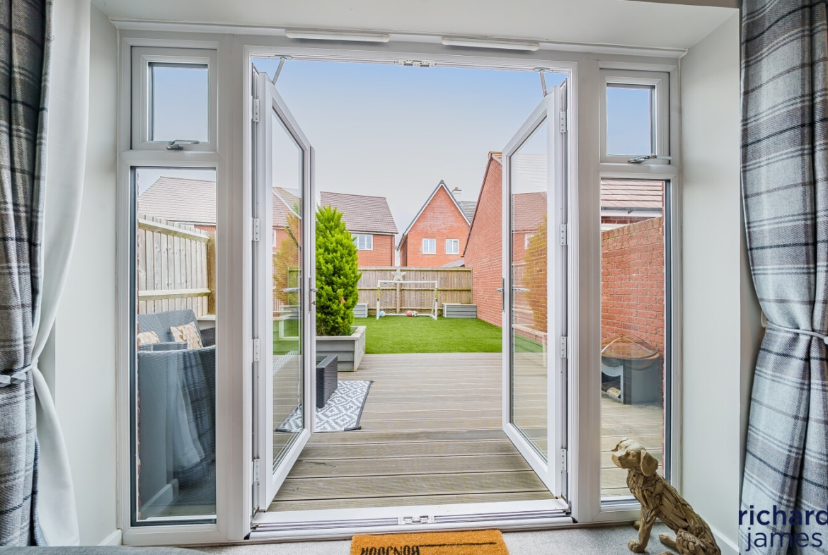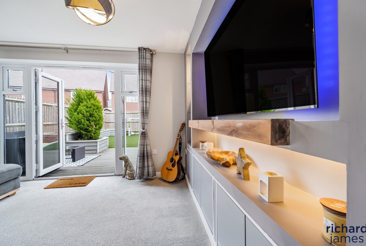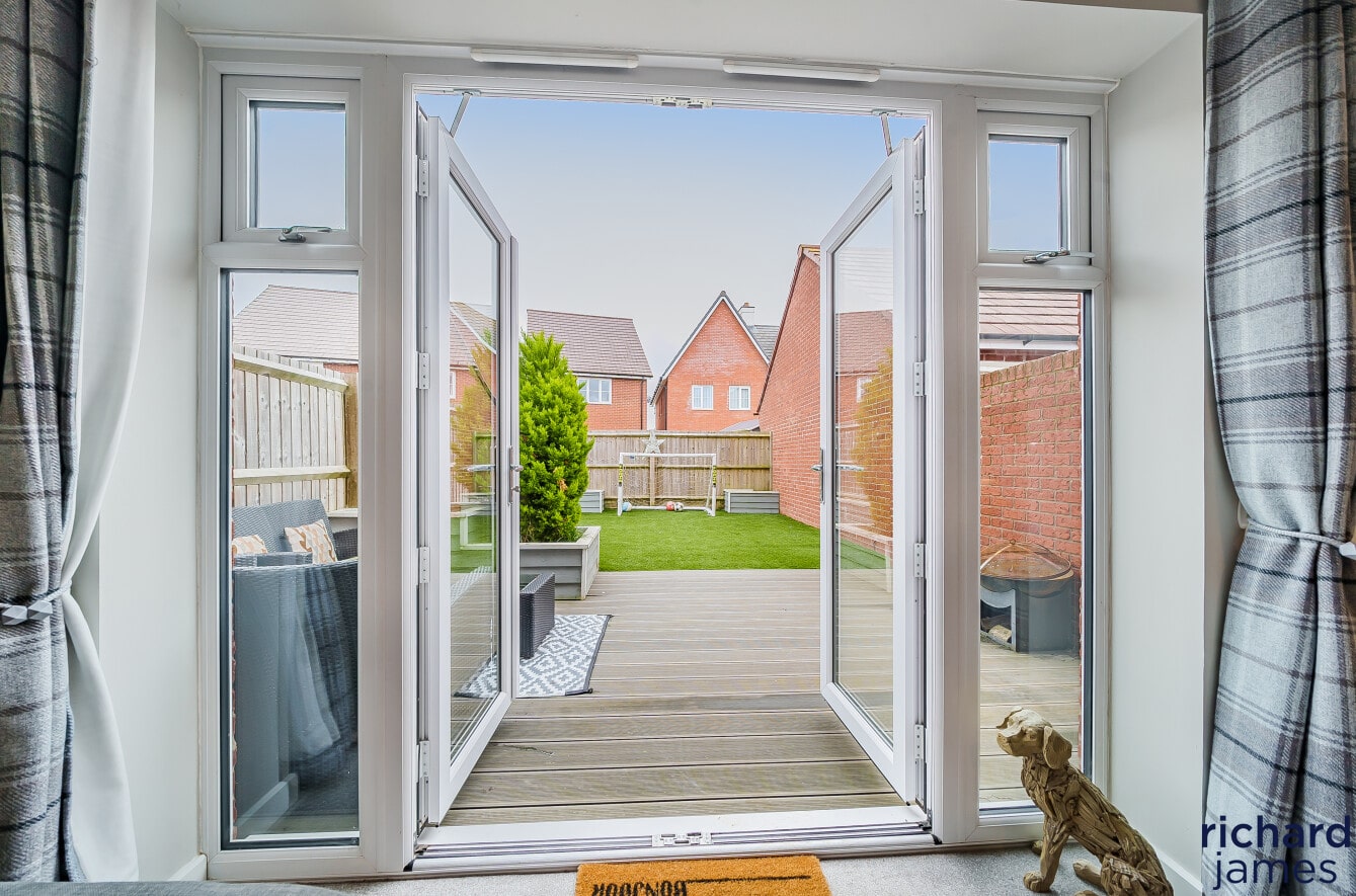The rear garden is generously sized, offering plenty of outdoor space and landscaped with a combination of decking and artificial lawn, ideal for both relaxation and entertaining.
