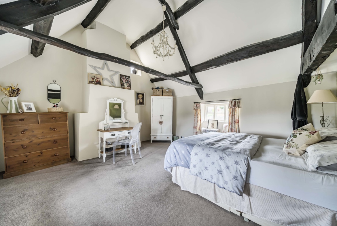 The ground floor provides excellent versatility with an entrance hall, three inviting reception rooms, and a well-designed kitchen/breakfast room, ideal for family life or entertaining. Upstairs, you’ll find four generous bedrooms, the highlight being a striking master suite with a vaulted ceiling. The bathroom is equally impressive, complete with a timeless roll-top bath.