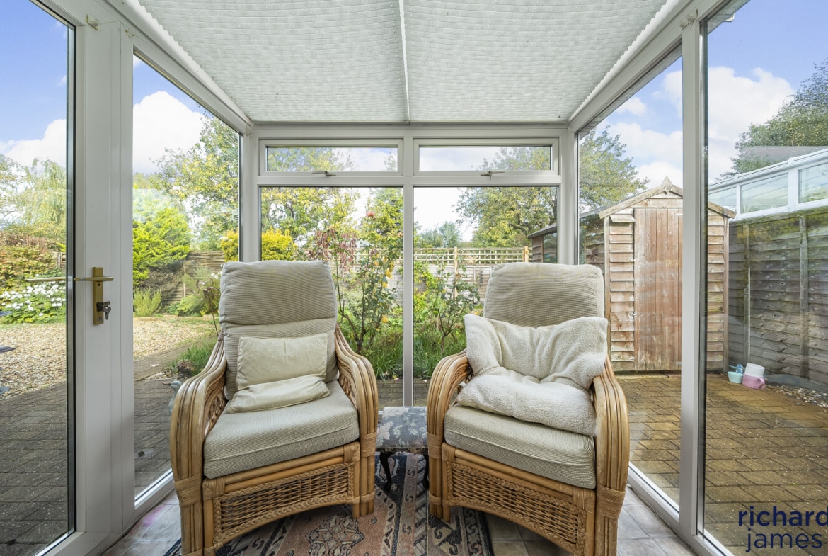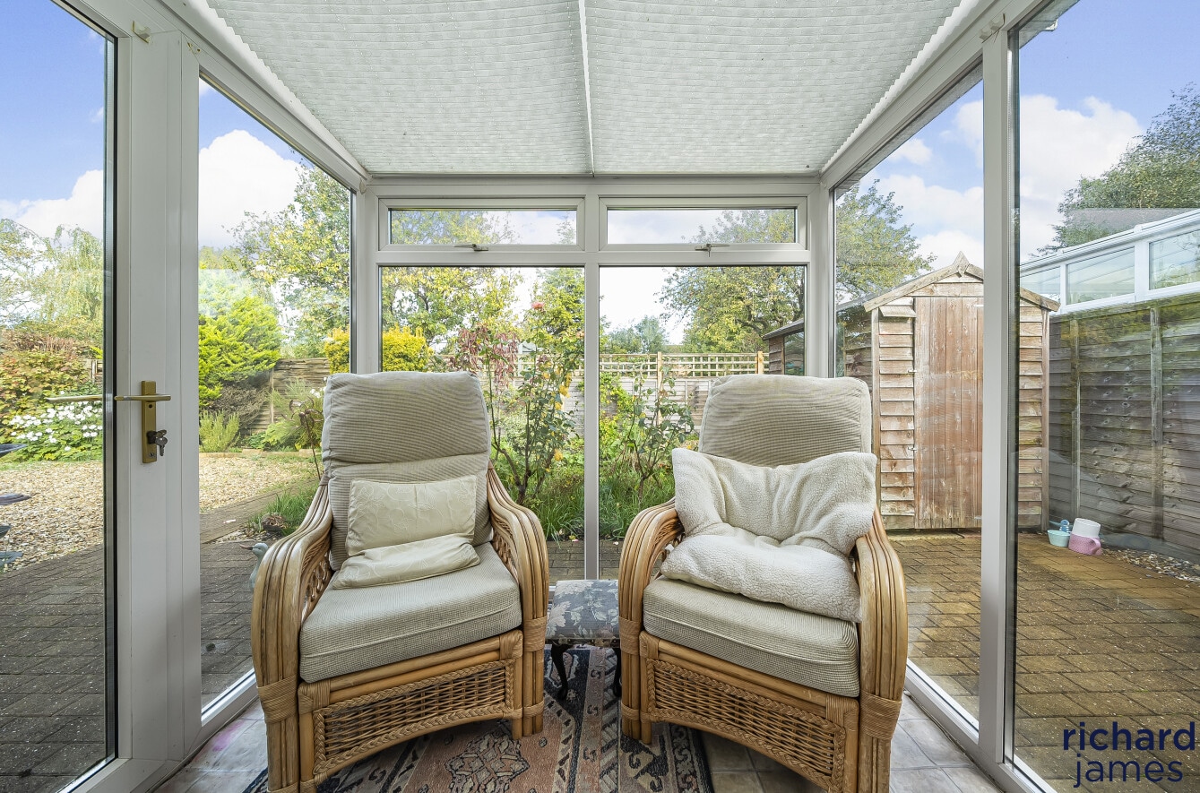 The living space includes a bay-fronted lounge, perfect for cozy evenings, a well-proportioned dining room, and a conservatory that offers an ideal spot to relax and enjoy the garden views. The kitchen is practical and well-equipped, providing plenty of storage and workspace. The bathroom has also been improved to add a double shower for added convenience.