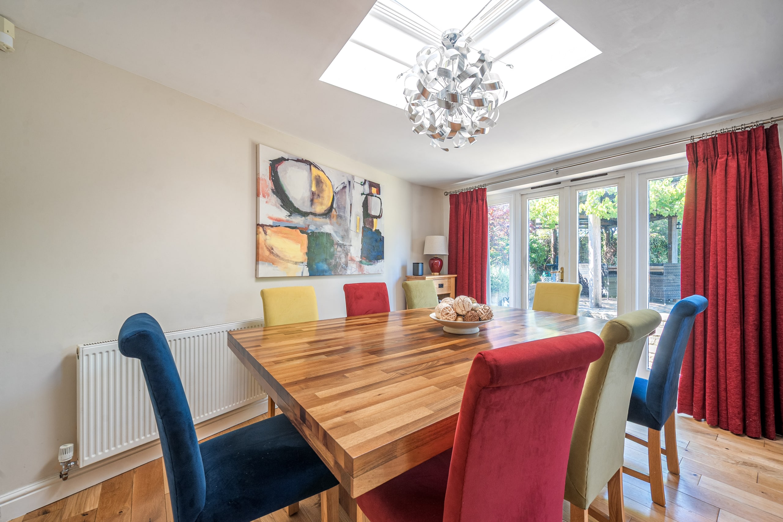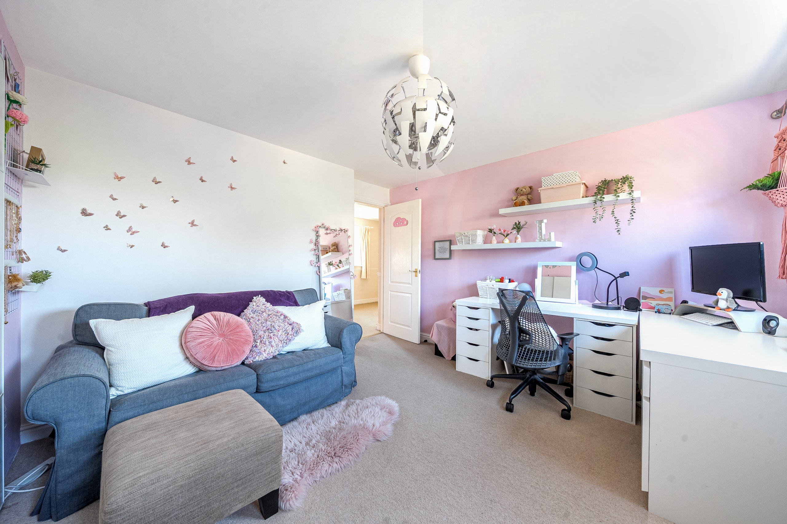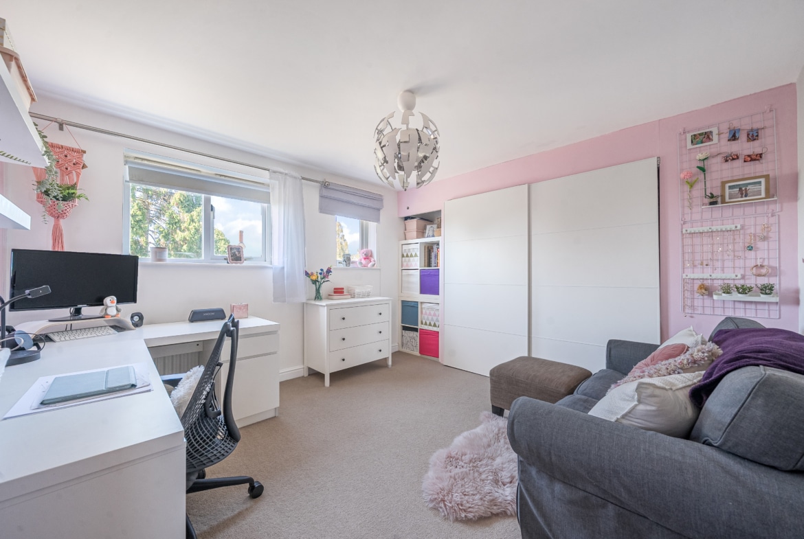 Upstairs, the principal bedroom serves as a peaceful sanctuary, with generous proportions, garden views, and a stylish en-suite shower room. Three further bedrooms – two doubles and a versatile single – are served by a family bathroom, offering plenty of flexibility for children, guests, or a home office.