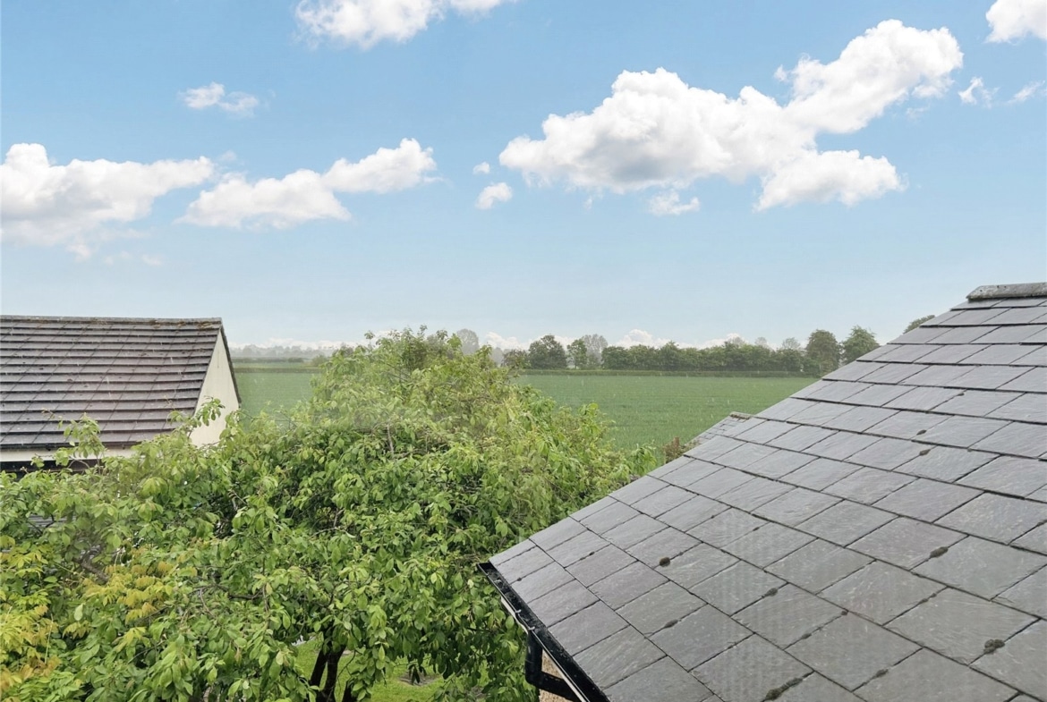 Outside, the frontage provides parking for multiple vehicles, with the driveway continuing to the side and leading to a detached double garage with power and light. The rear garden is of excellent size, mainly laid to lawn, and enjoys open views across surrounding farmland – a wonderful backdrop for family life and entertaining.