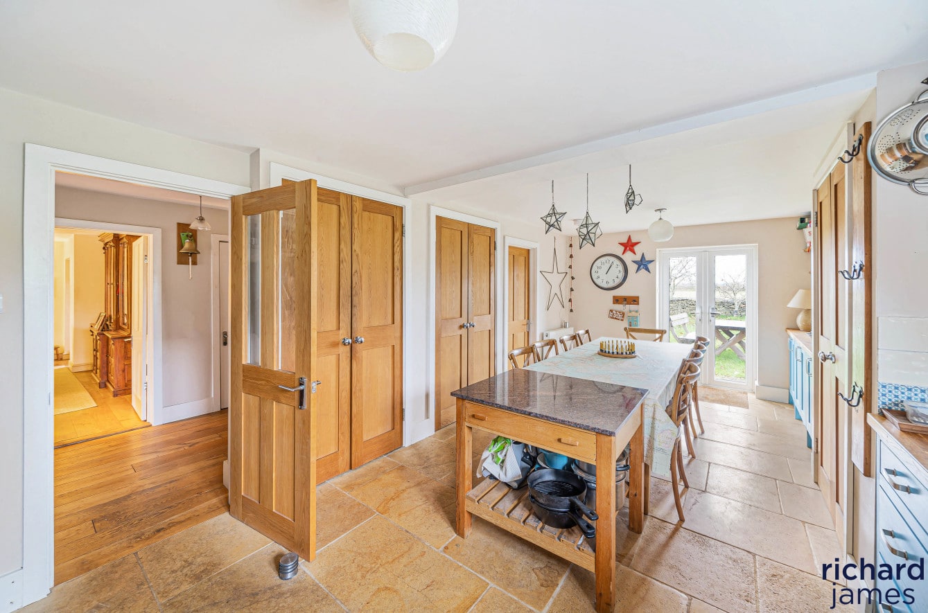 A beautifully refurbished four-bedroom detached home in the Cotswold village of Kempsford. Formerly the village shop, now a stylish family home with spacious living, open-plan kitchen/diner, large garden with countryside views, double garage, and strong community nearby.