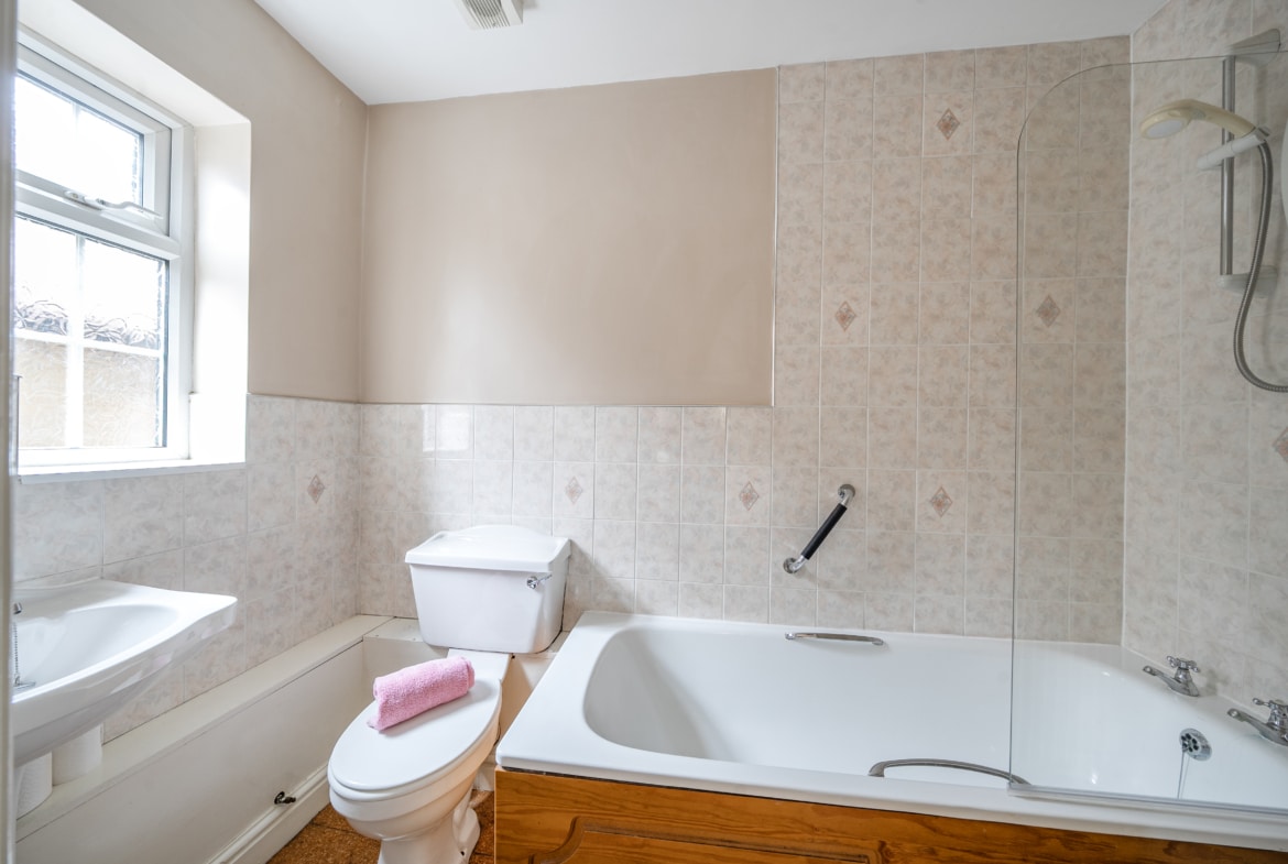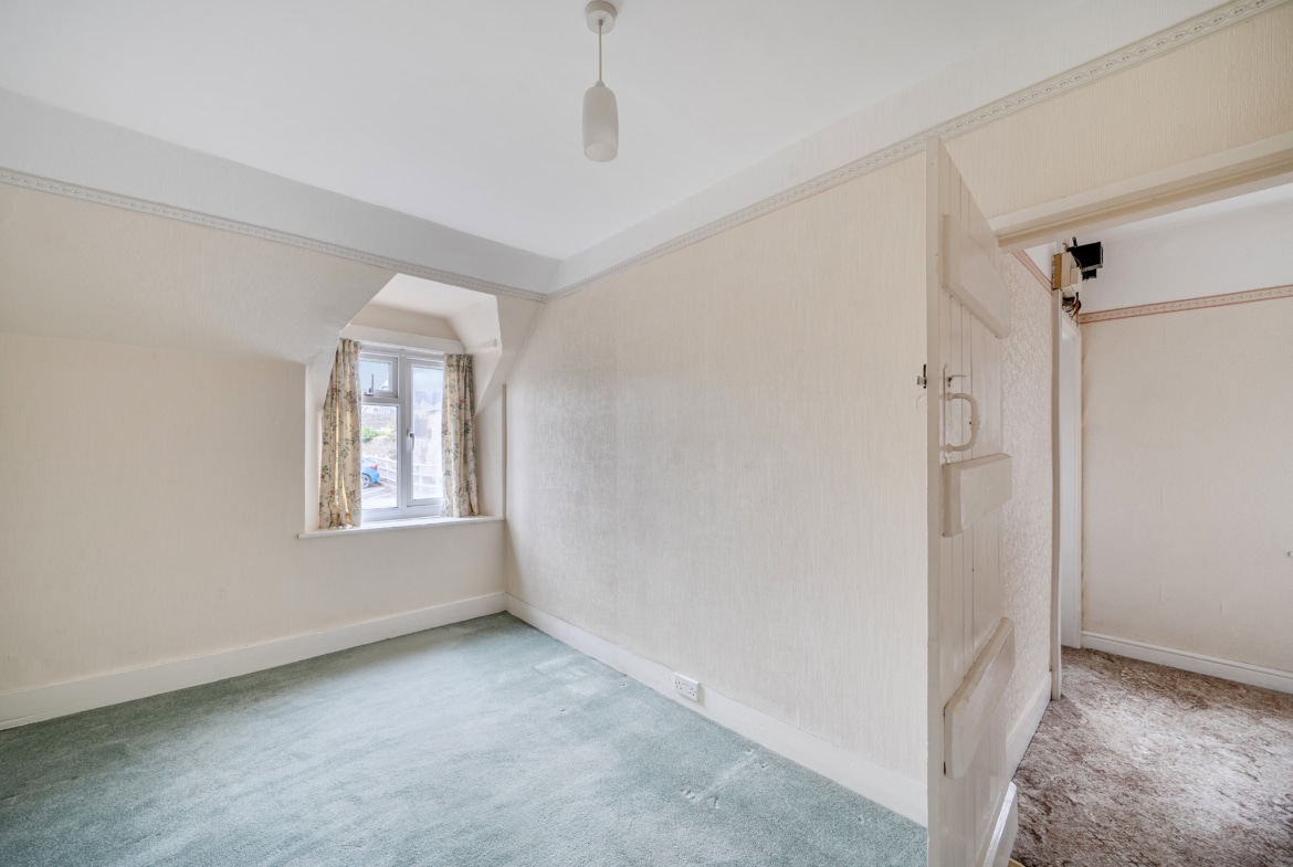 Upstairs, the property offers three bedrooms. The main bedroom is located at the rear of the house and benefits from a quiet aspect overlooking the garden. The second bedroom is a good-sized double situated at the front of the property, while the third bedroom, also upstairs, would make an excellent nursery, study, or guest room.