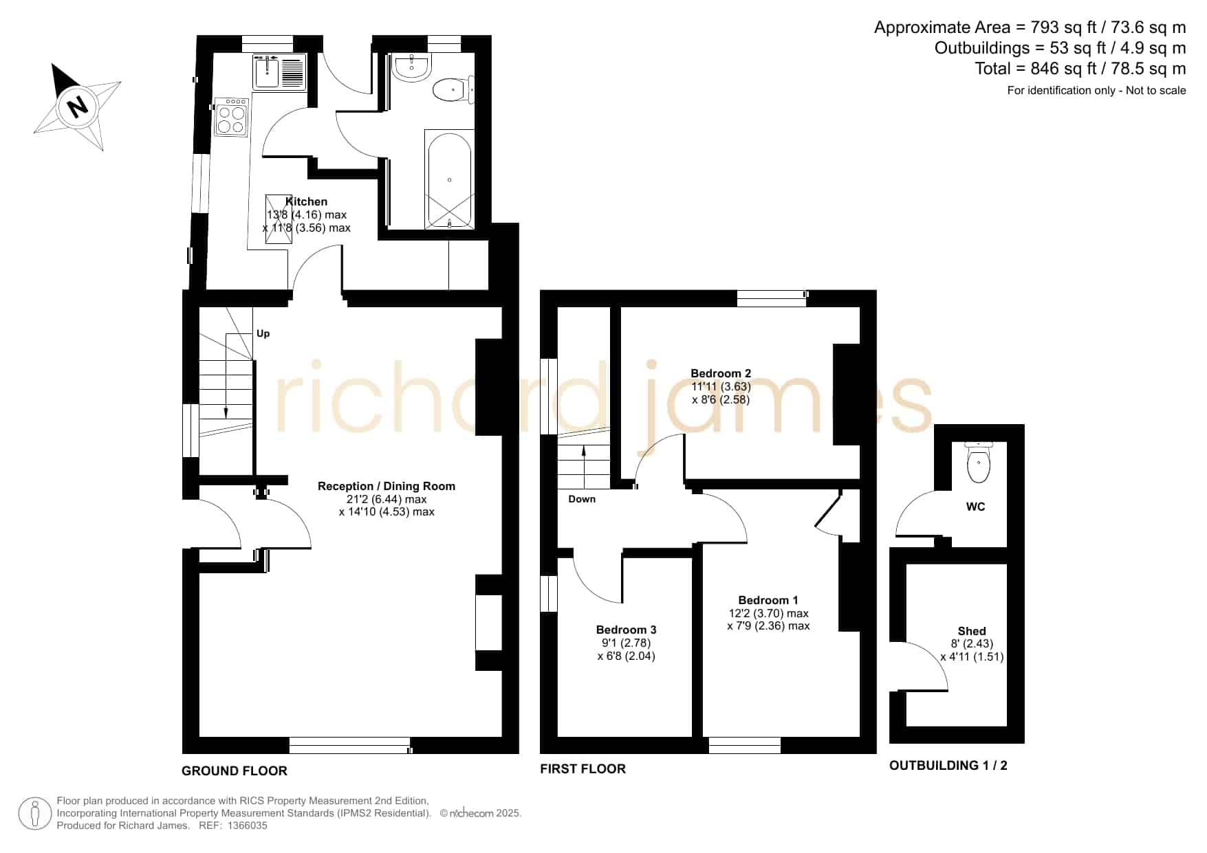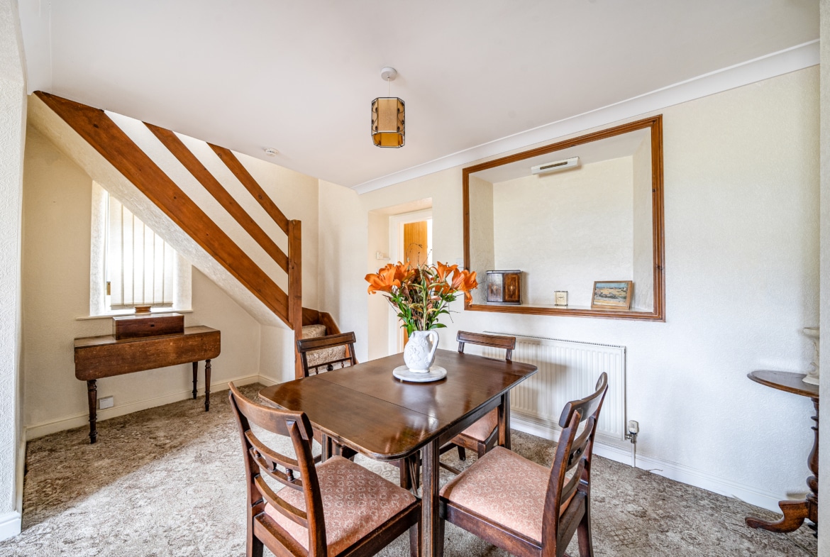 The ground floor features a welcoming and spacious reception and dining room that runs the full depth of the house, providing a warm and versatile living space. A staircase leads to the first floor, while to the rear, the fitted kitchen offers direct access to the garden area and is positioned next to the family bathroom. The bathroom includes a full-sized bath and is conveniently located for everyday use.
