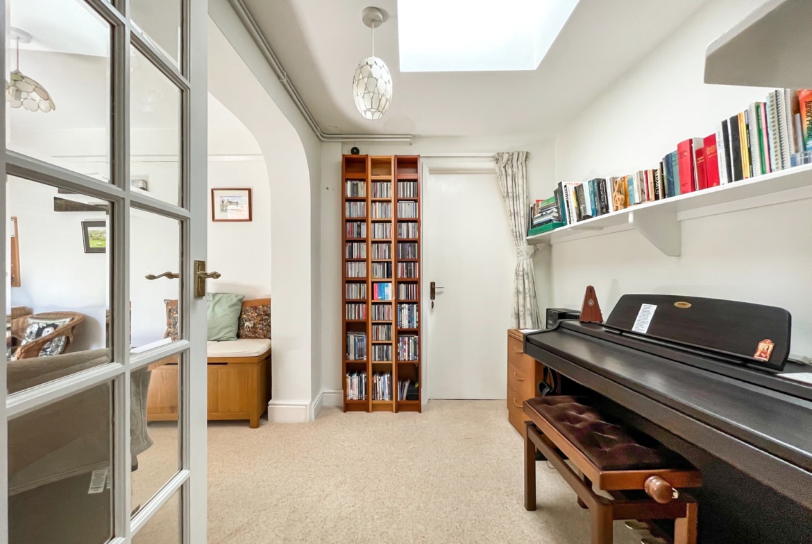 The property features two well-proportioned bedrooms and two bathroom areas, including a ground floor wet room, making it ideal for couples, small families, or those looking to downsize. The three reception rooms — including a vibrant living room, a cosy dining room, and a bright garden room — provide flexible living and entertaining space.