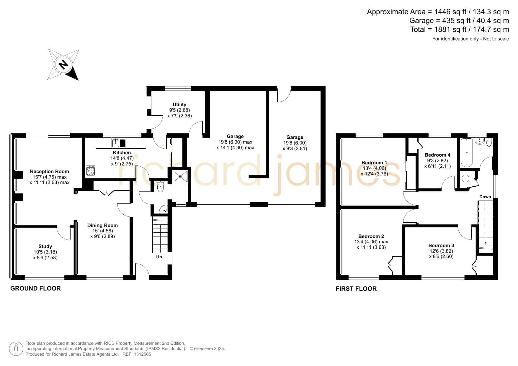 The accommodation currently comprises a welcoming entrance hall, a living room, separate dining room, study, kitchen, utility room, and a downstairs shower room. Upstairs, there are four good-sized bedrooms and a family bathroom. The property also benefits from a double garage, which lends itself well to extension possibilities (subject to planning permission), offering huge potential to create a contemporary, open-plan living space.