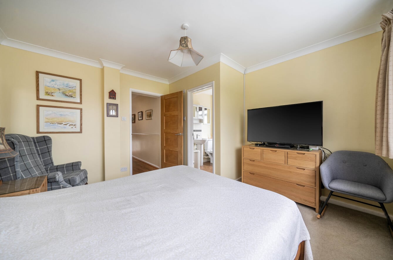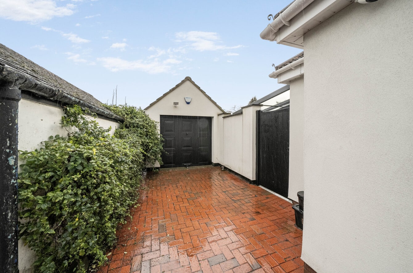 As you approach the front of the property, you will see it has a large front garden, with generous block paved driveway providing ample off road parking and providing access to the side, leading to the detached Garage. There is also additional stone chipped gardens, with selection of shrubs. The private and non-overlooked Rear Garden, enjoys a sunny South facing aspect. In addition to the patio and veranda, there is also good sized lawn area with shrub and raised borders, with a further patio area. Enclosed by timber fencing and useful personal door into the Garage.