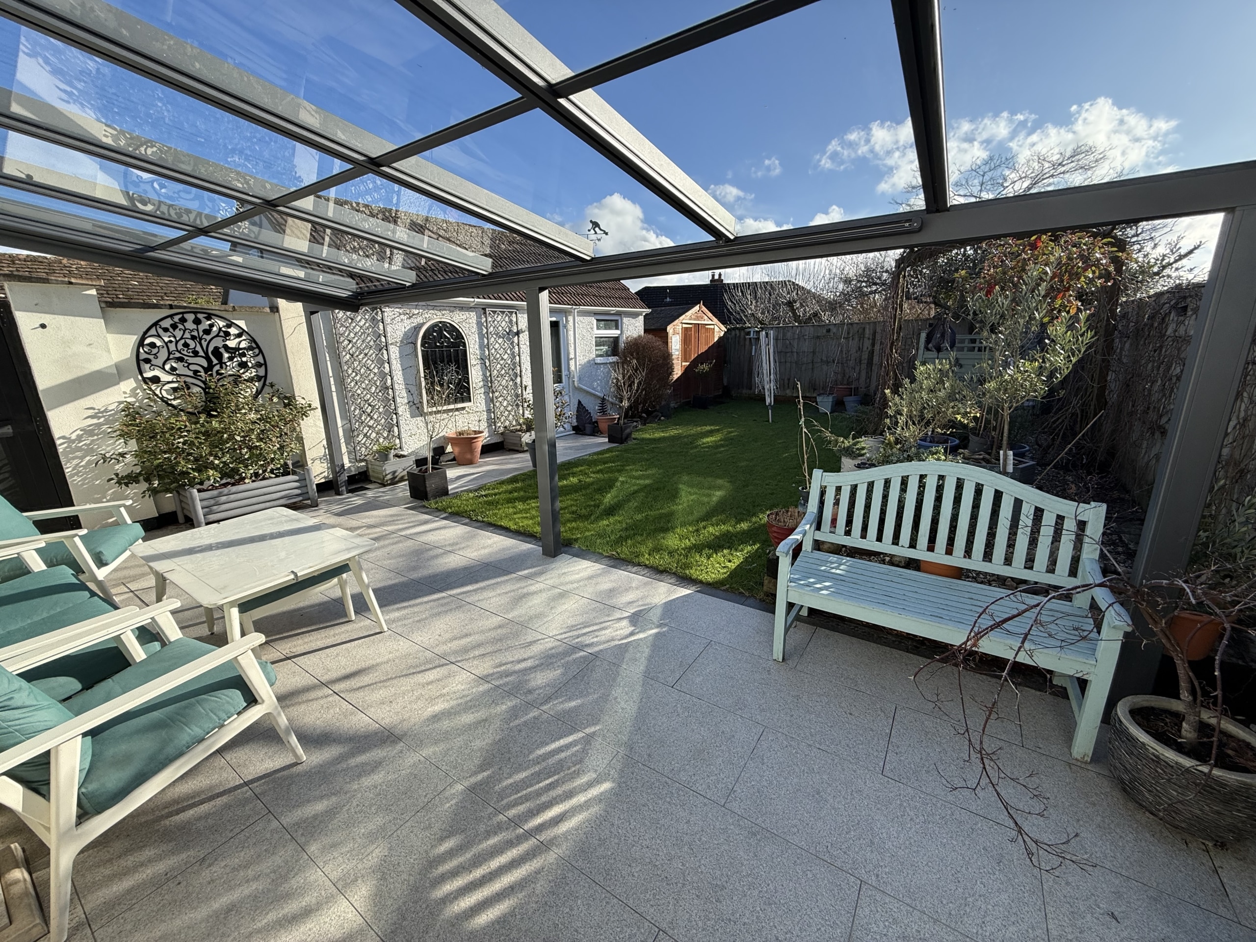 The bungalow itself offers approaching 1100sqft of well presented versatile living space, perfect for the modern family. It has been thoughtfully extended over time and now includes; Impressive Entrance Porch, Hallway, giving convenient access to all the rooms including; spacious Sitting Room with log burner, Dining Room which opens to the beautiful hand crafted and finished Kitchen with Miele & Siemans integrated appliances, PVCu double glazed doors opening into the Rear Garden with full width patio area, with glass veranda over with integrated motorised awning, should the summer sun become too much for you and ideal for entertaining in all weathers. The Kitchen opens to the Dining Room. With the Four Bedrooms, offering versatile living and Bedroom One, also features an Ensuite Shower Room, with a further refitted Family Shower Room.