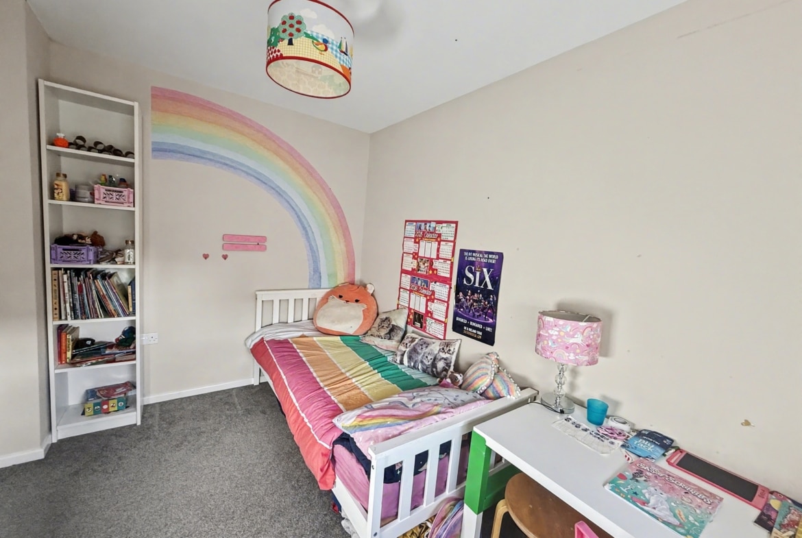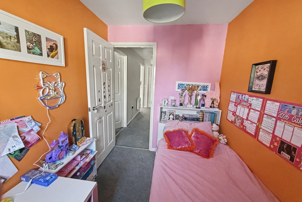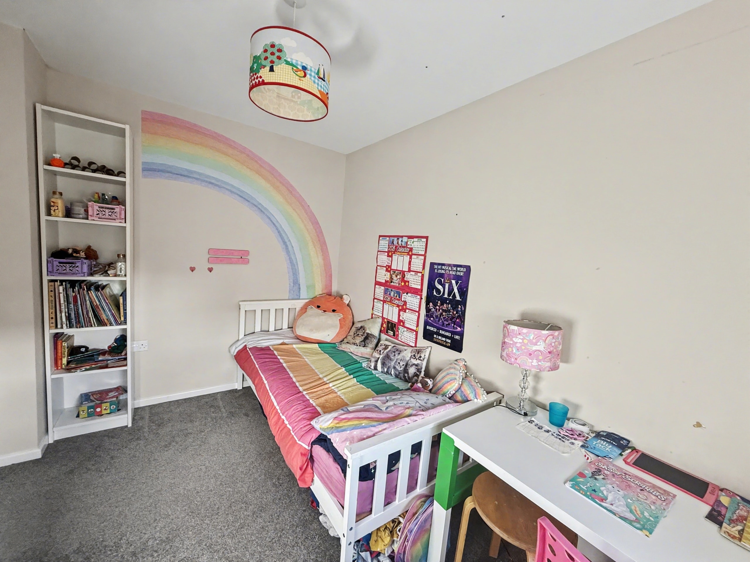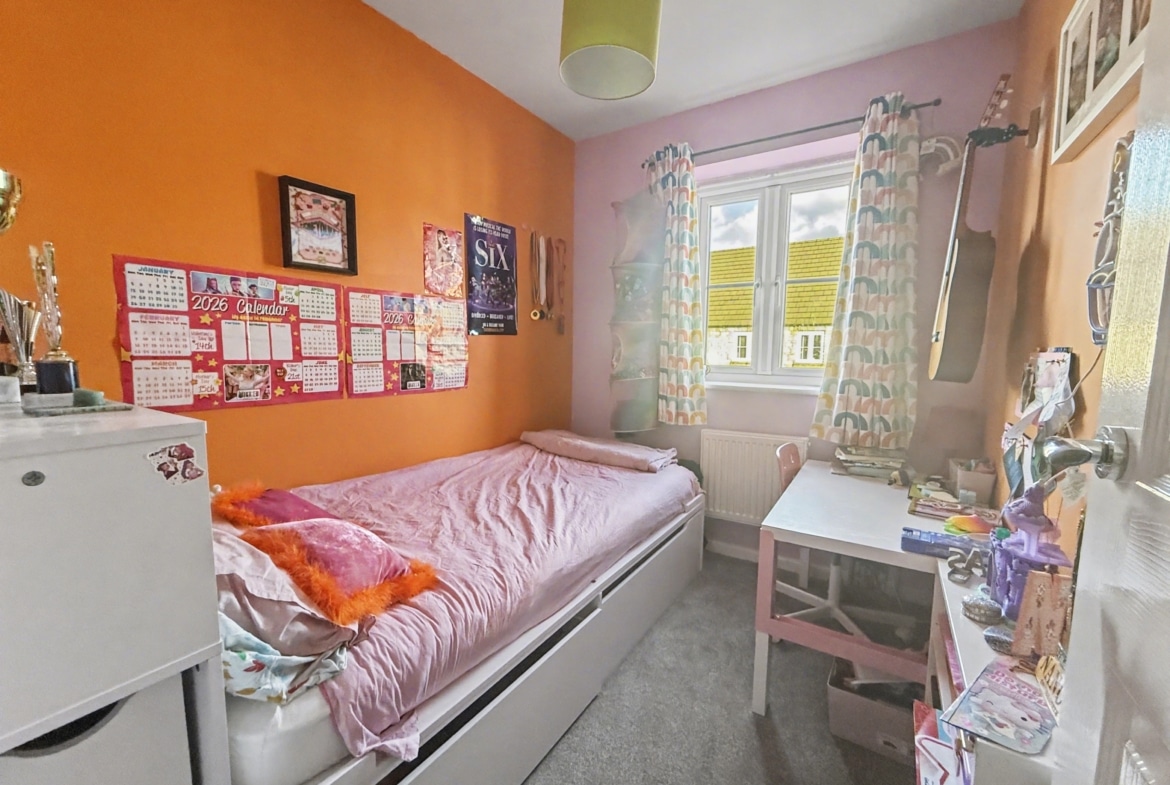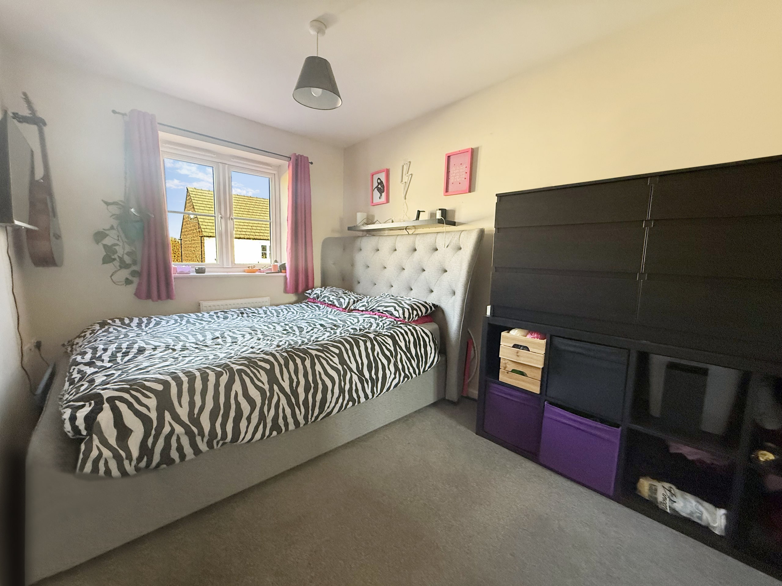 Upstairs, the home continues to impress with three well-sized bedrooms. The principal bedroom benefits from the added luxury of an en-suite shower room, creating a private retreat. The remaining two bedrooms are versatile spaces, ideal for children, guests, or a home office, and are served by a family bathroom accessed from the landing. Additional storage is provided via a useful built-in cupboard.