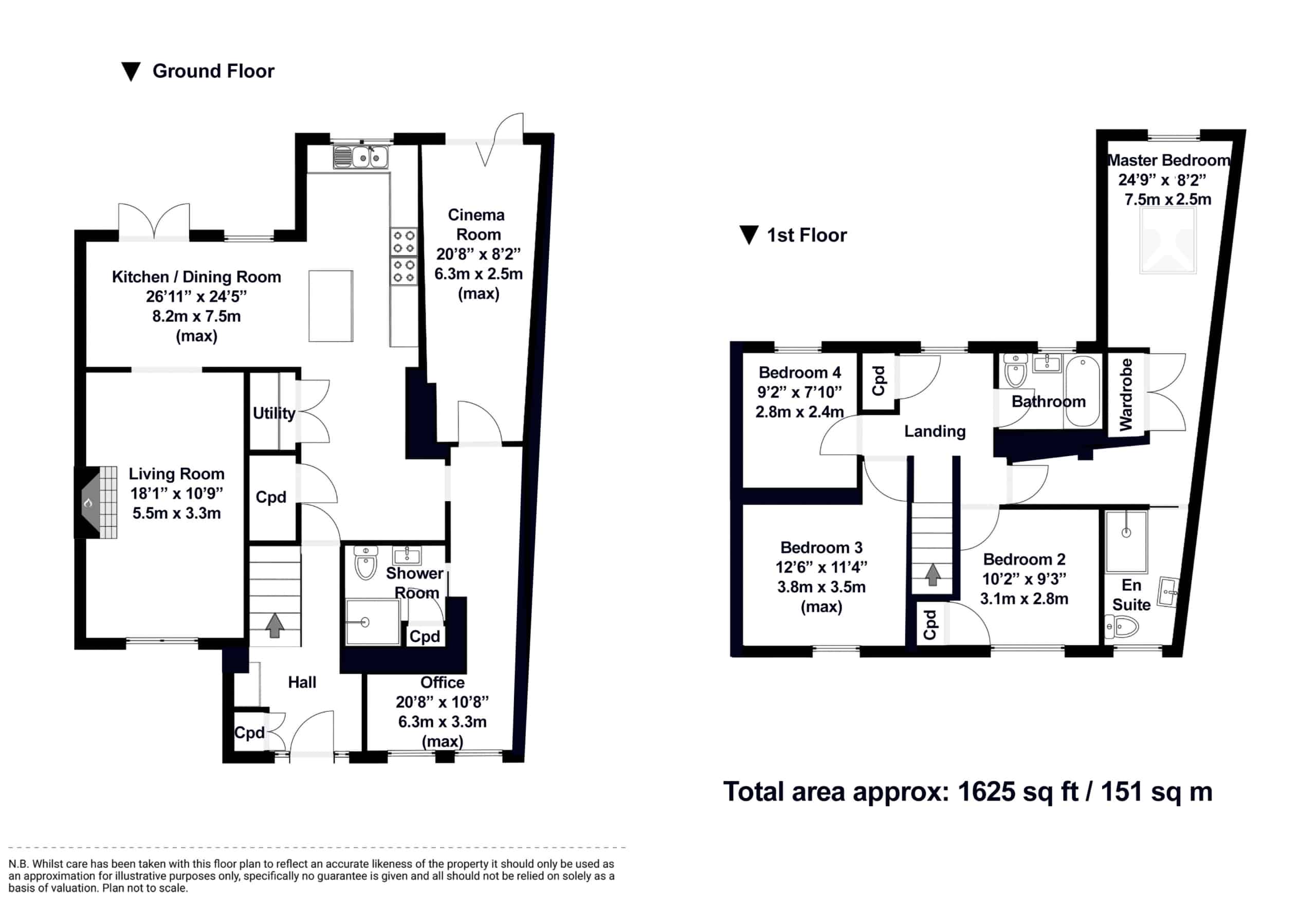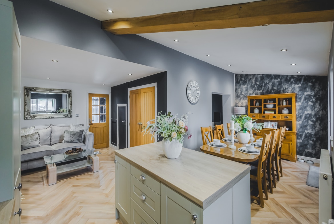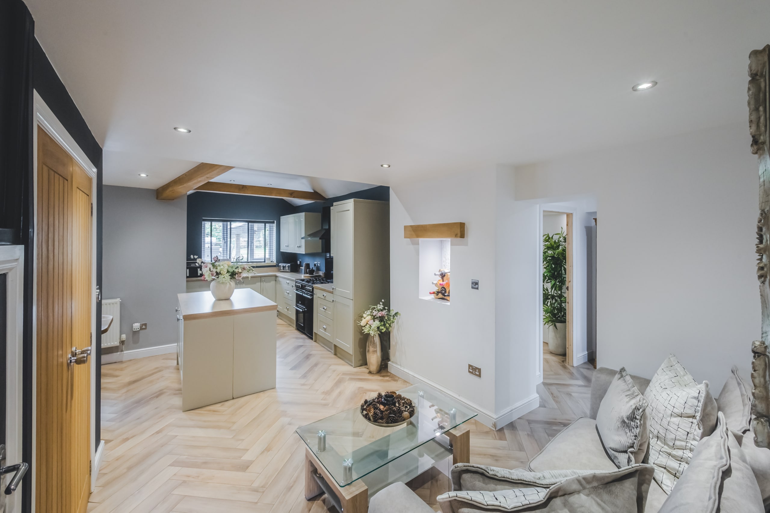 The welcoming entrance hall leads to a spacious living room, perfect for cosy evenings. The heart of the home is the impressive open-plan kitchen/dining room, flooded with natural light and offering a sociable space for family living and entertaining. A separate utility room, ground floor shower room, and two versatile reception rooms – currently a cinema room and an office – provide flexible accommodation for modern lifestyles.