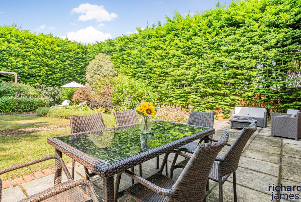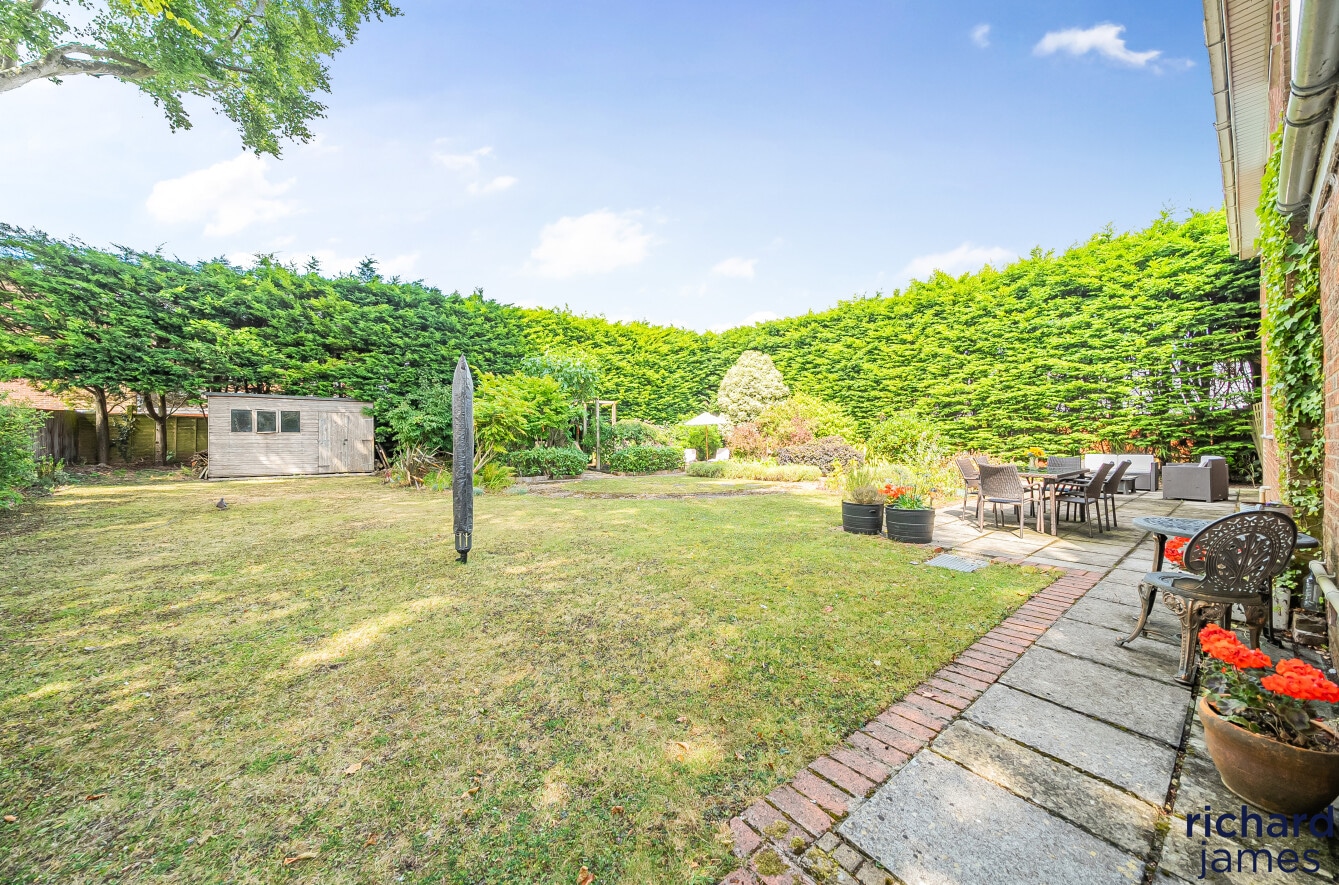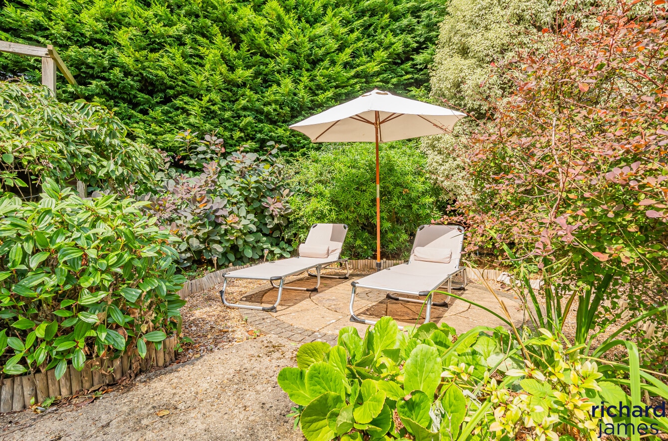 The property’s expansive garden, surrounded by tall hedges for exceptional privacy, features a beautiful blend of sun and shade areas to suit every preference. Dotted with mature trees and lush shrubs, the garden offers a serene setting and includes a dedicated barbecue area, perfect for enjoying the outdoors and entertaining guests.