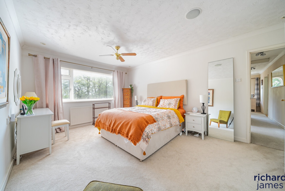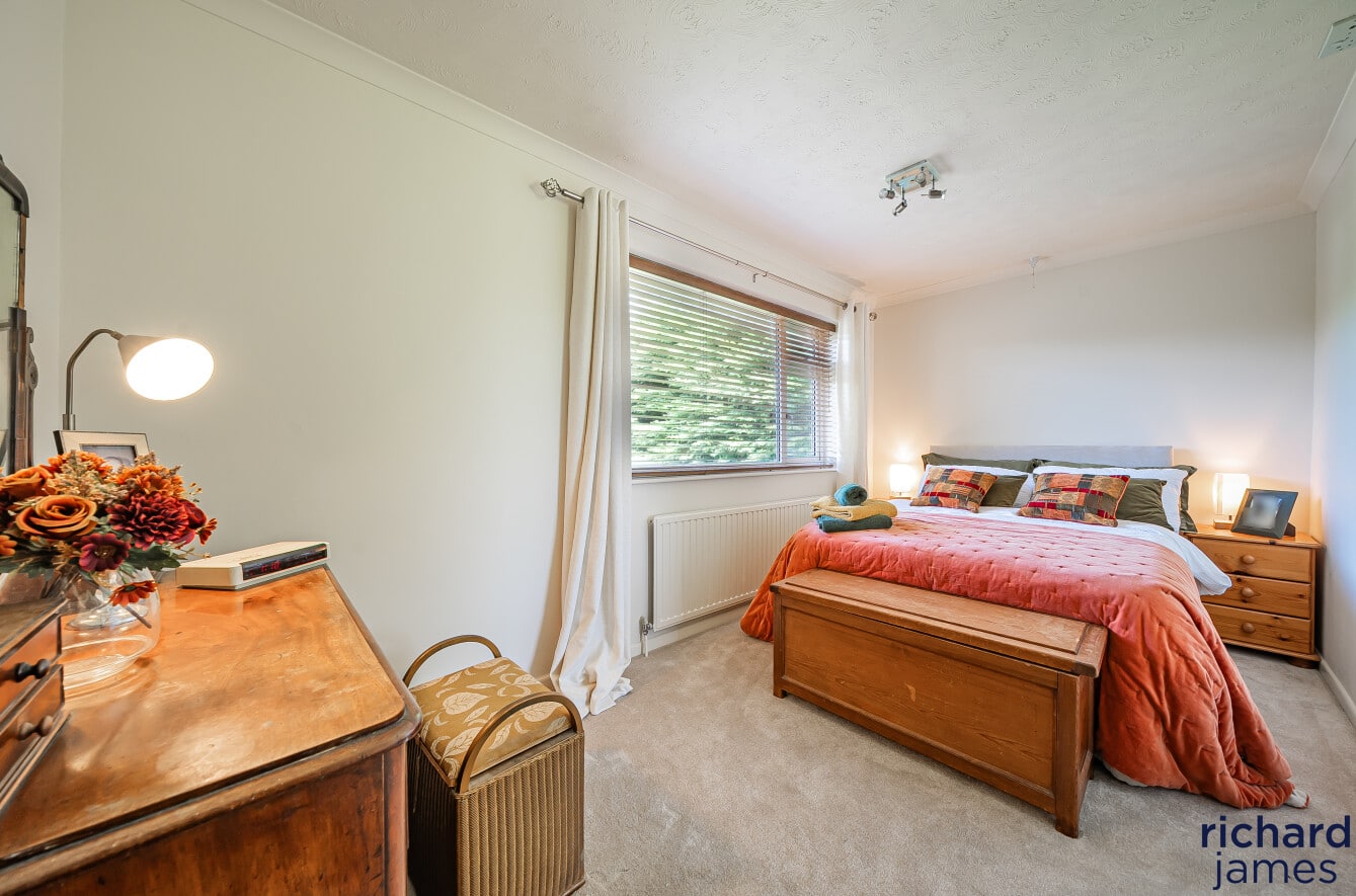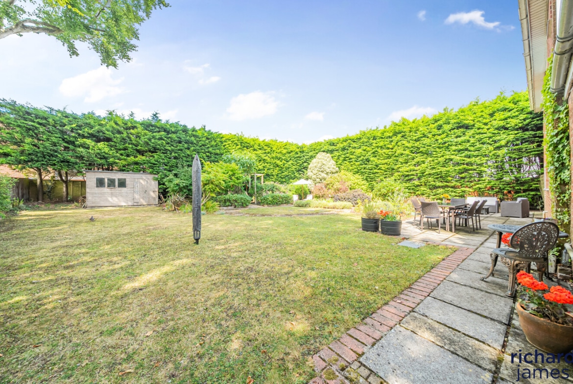 The property’s expansive garden, surrounded by tall hedges for exceptional privacy, features a beautiful blend of sun and shade areas to suit every preference. Dotted with mature trees and lush shrubs, the garden offers a serene setting and includes a dedicated barbecue area, perfect for enjoying the outdoors and entertaining guests.