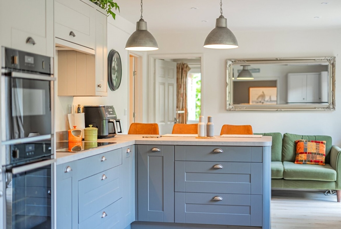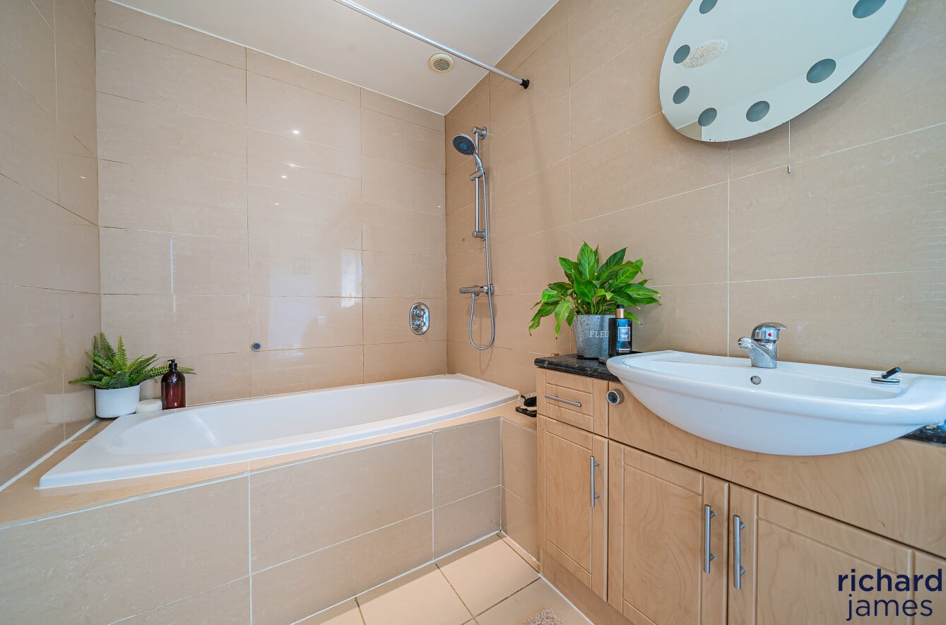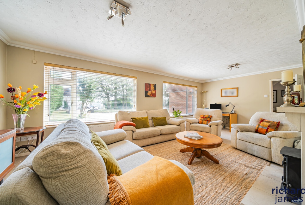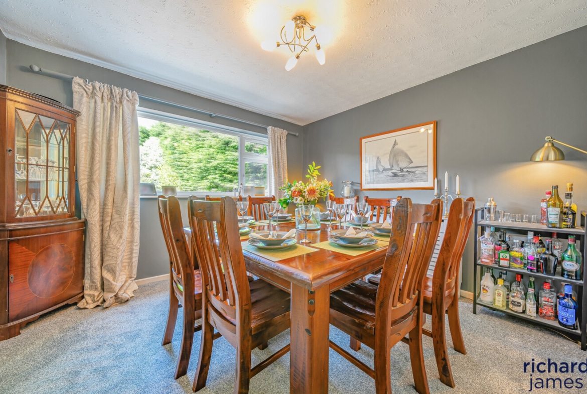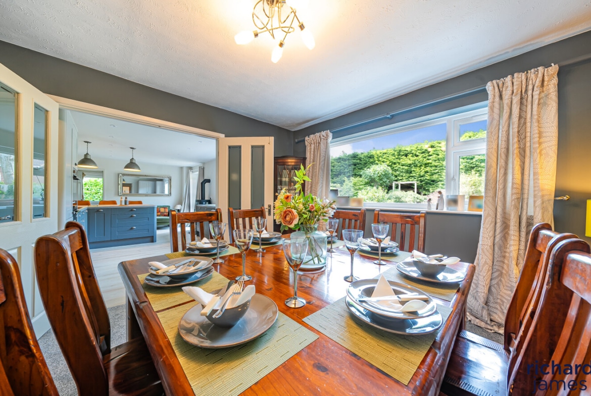 Upon entering, you are greeted by a spacious entrance hall leading to a cosy lounge, which is adorned with a wood burner and built-in bookcases—ideal for relaxing evenings. The newly renovated kitchen, complete with integrated NEFF and AEG appliances, flows seamlessly into the garden. Additionally, a modern, separate utility room with built-in appliances enhances the convenience of this well-appointed space.