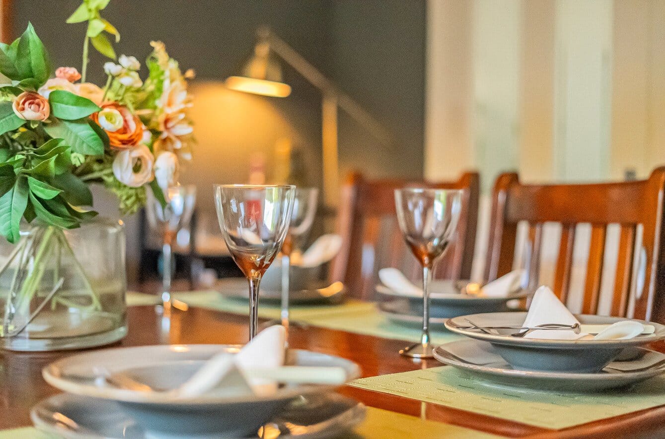 The dining room offers versatility, featuring doors that can be opened or closed as needed, allowing for private dining or an open flow into the kitchen and lounge. This flexibility creates an inviting atmosphere for entertaining guests, making gatherings a delight no matter the occasion.
