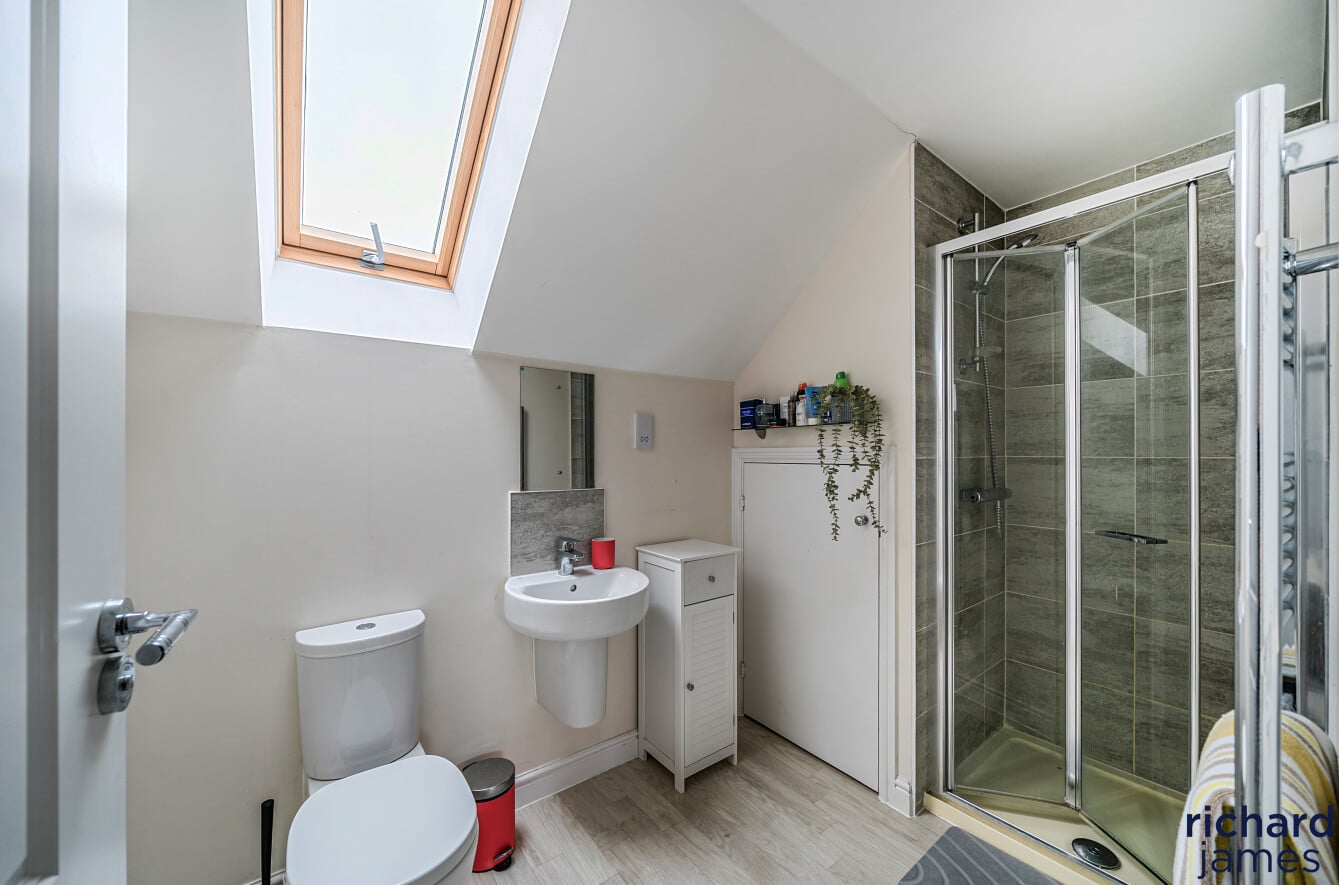 The second floor offers; first floor landing, a large main bedroom with fitted wardrobes and a modern en-suite shower room.