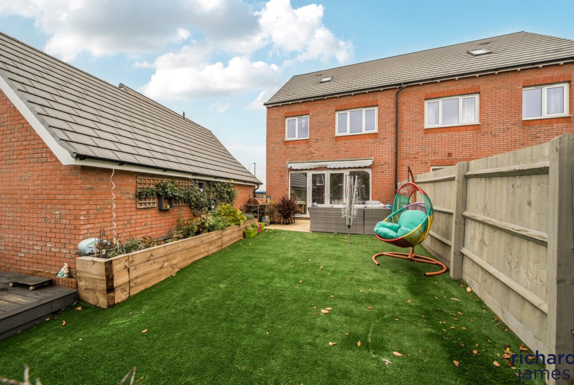 To the rear is an enclosed private rear garden with a patio seating area leading to an artificial lawn offering the perfect space for children to play or for barbecuing and entertaining.