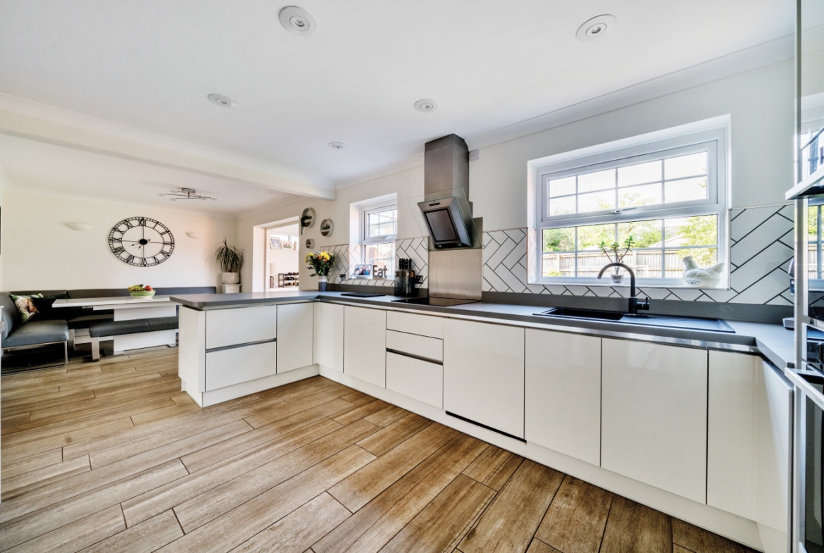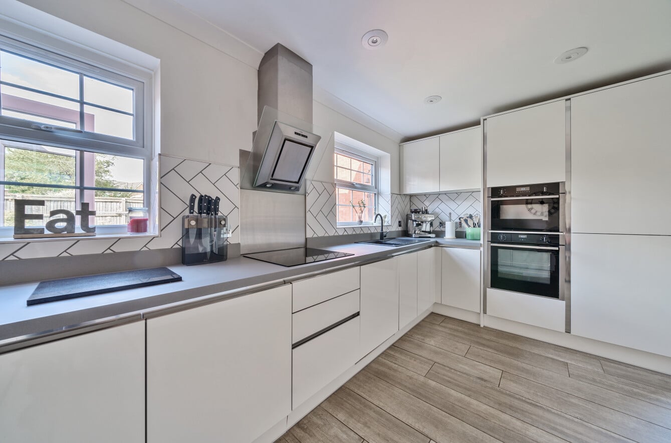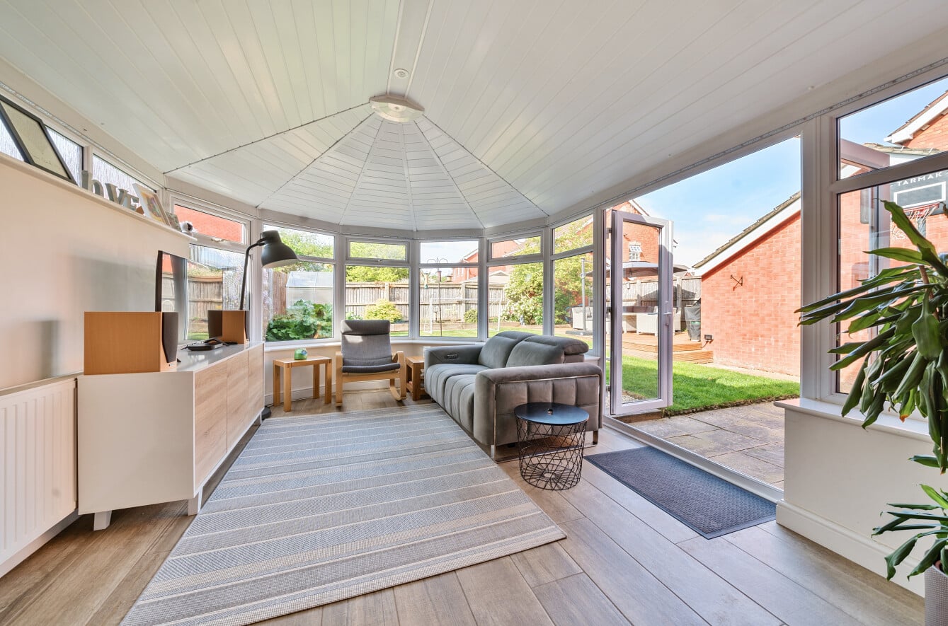 Hard wood flooring runs throughout the lounge and hallway staircase and low maintenance tiles adorn the floor of the modernised kitchen, which features integrated appliances. The conservatory benefits from a solid roof and underfloor heating, which runs through to the kitchen.