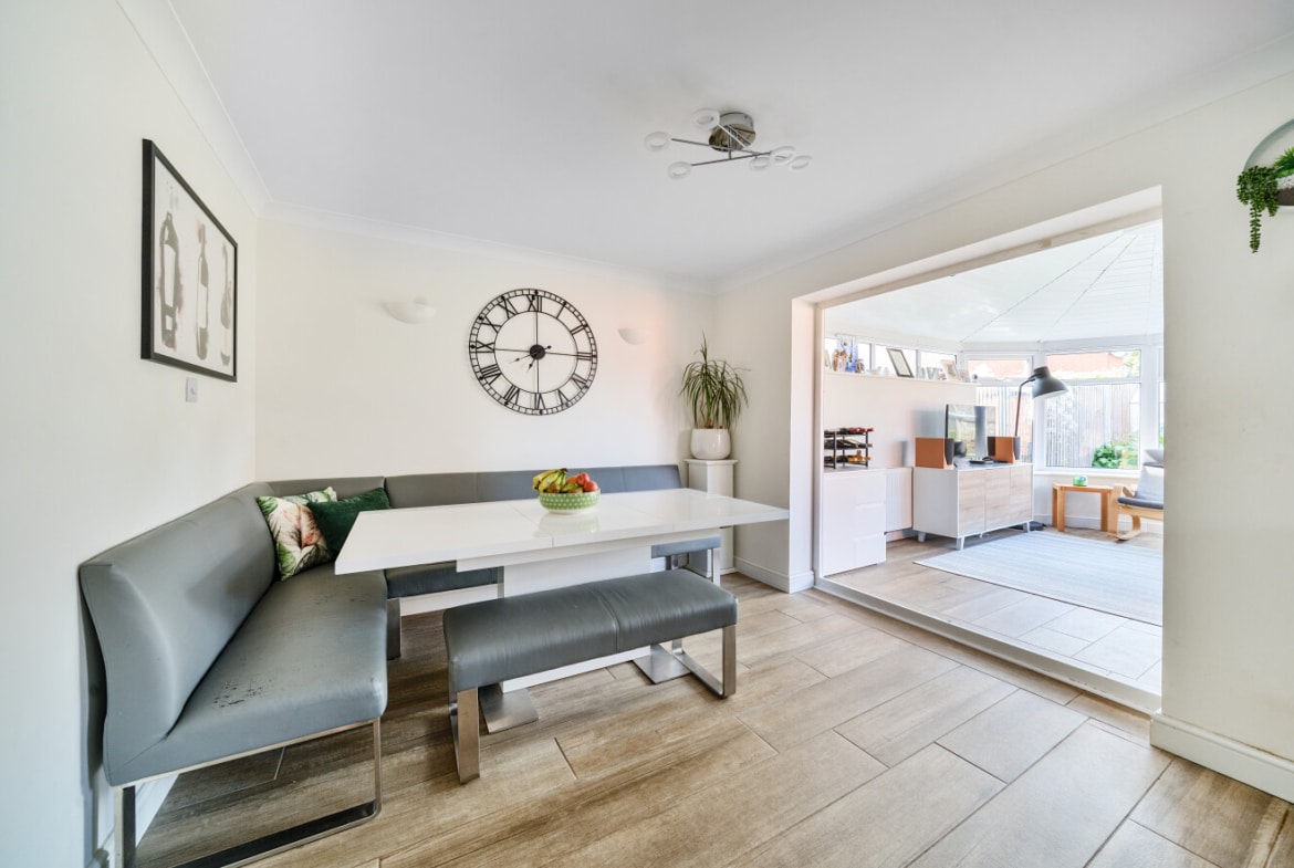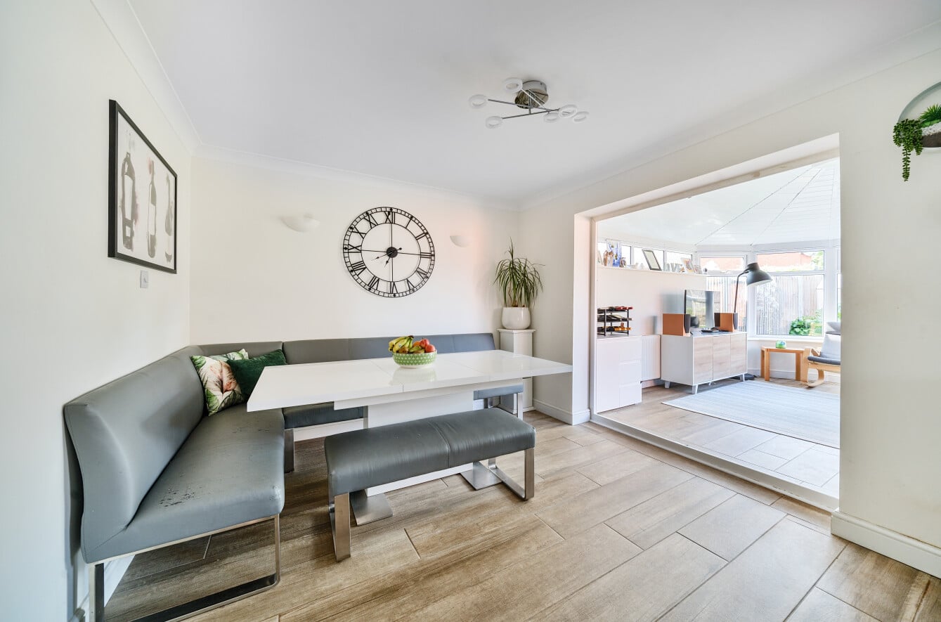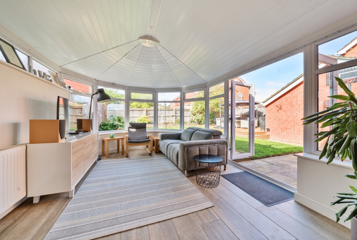 Hard wood flooring runs throughout the lounge and hallway staircase and low maintenance tiles adorn the floor of the modernised kitchen, which features integrated appliances. The conservatory benefits from a solid roof and underfloor heating, which runs through to the kitchen.