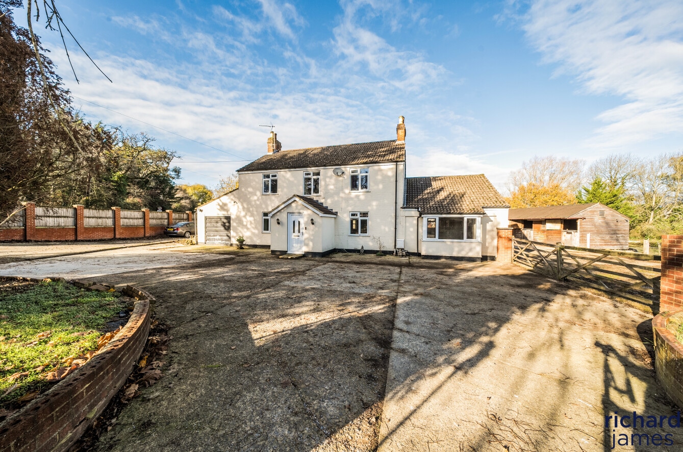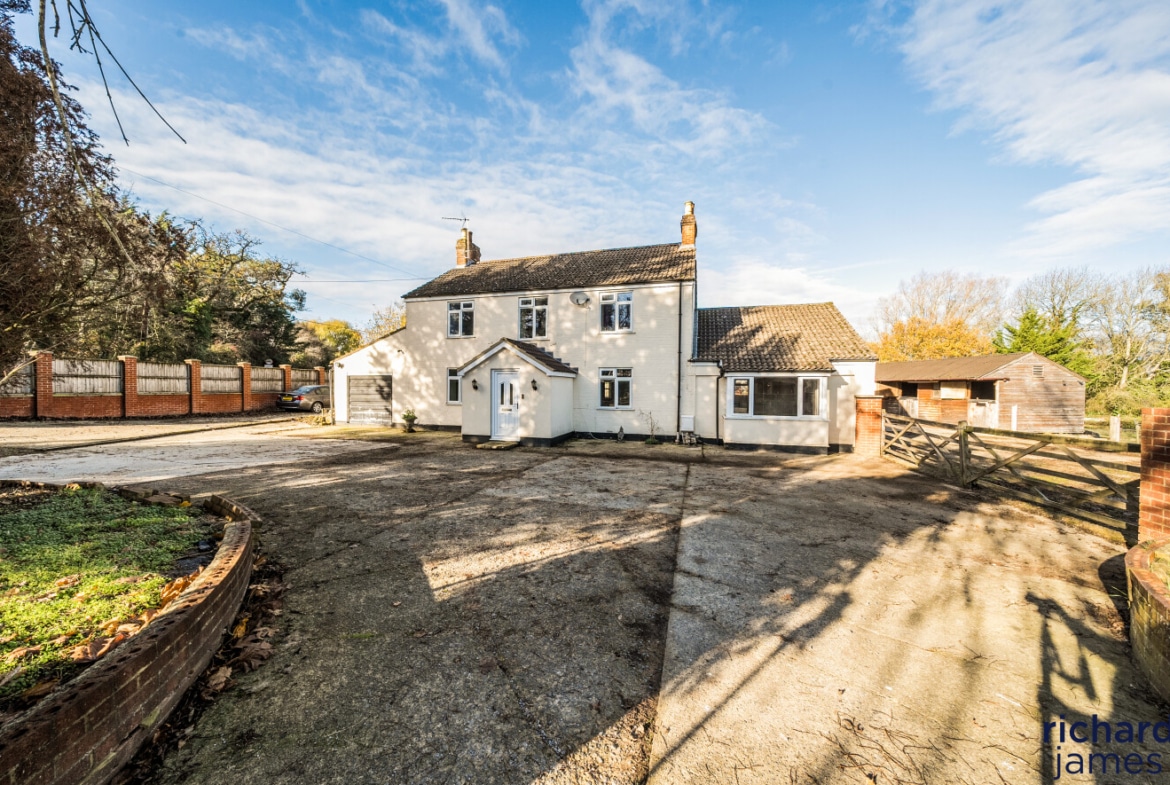 The property also benefits from a substantial driveway offering parking for multiple vehicles, along with garage providing excellent storage or workshop potential. Perfect for families with several cars, horseboxes or those needing space for larger vehicles.