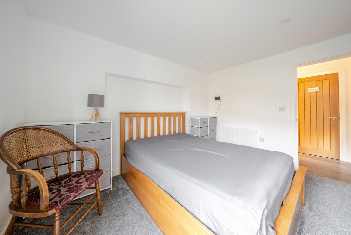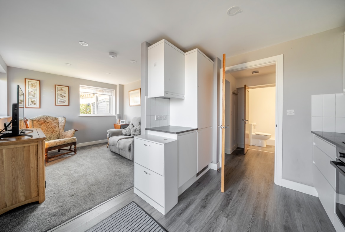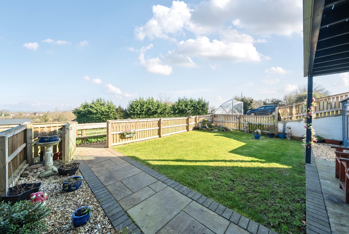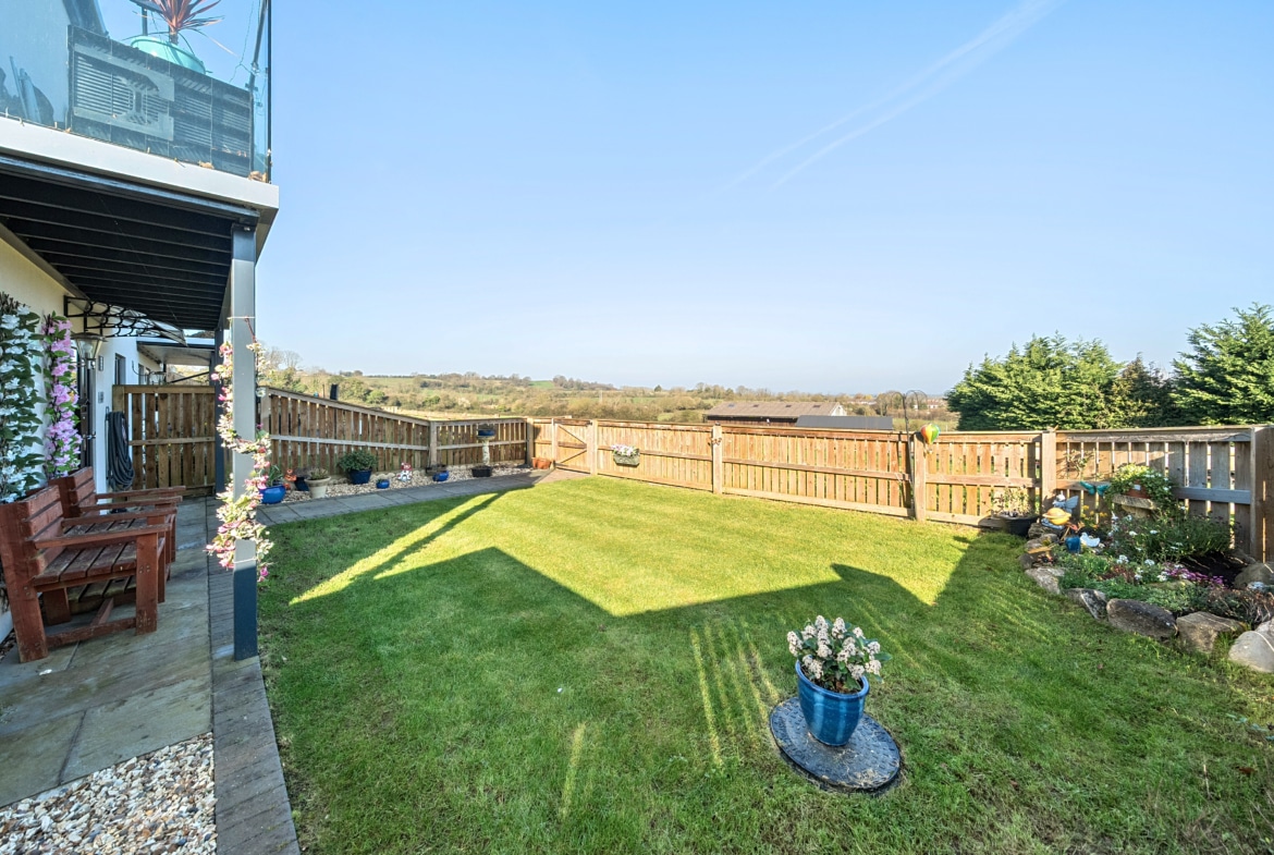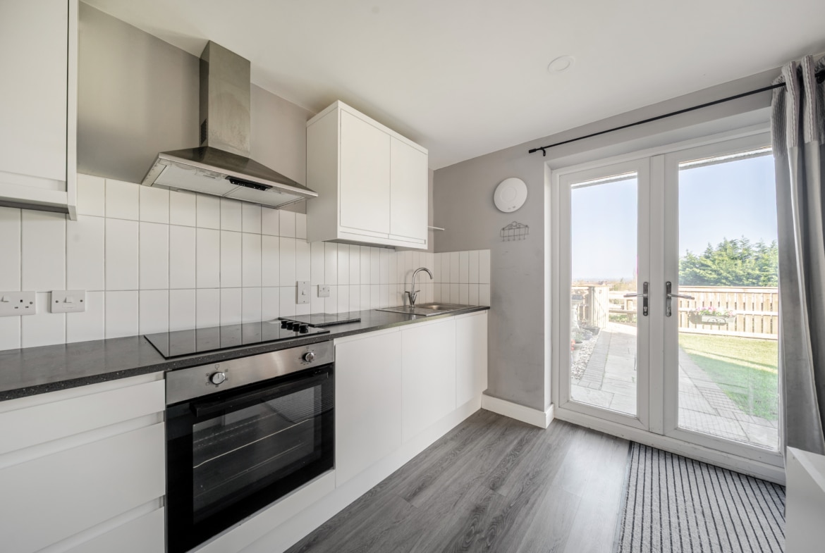 NO CHAIN – A stunning one bedroom modern ground floor home with a beautiful garden and far reaching views. Inside you have a modern fitted kitchen and living area with French Doors onto the rear. To the rear is a double bedroom with door onto the side patio area and a shower room. The property enjoys country views and has an allocated parking space. Viewing Highly recommended.