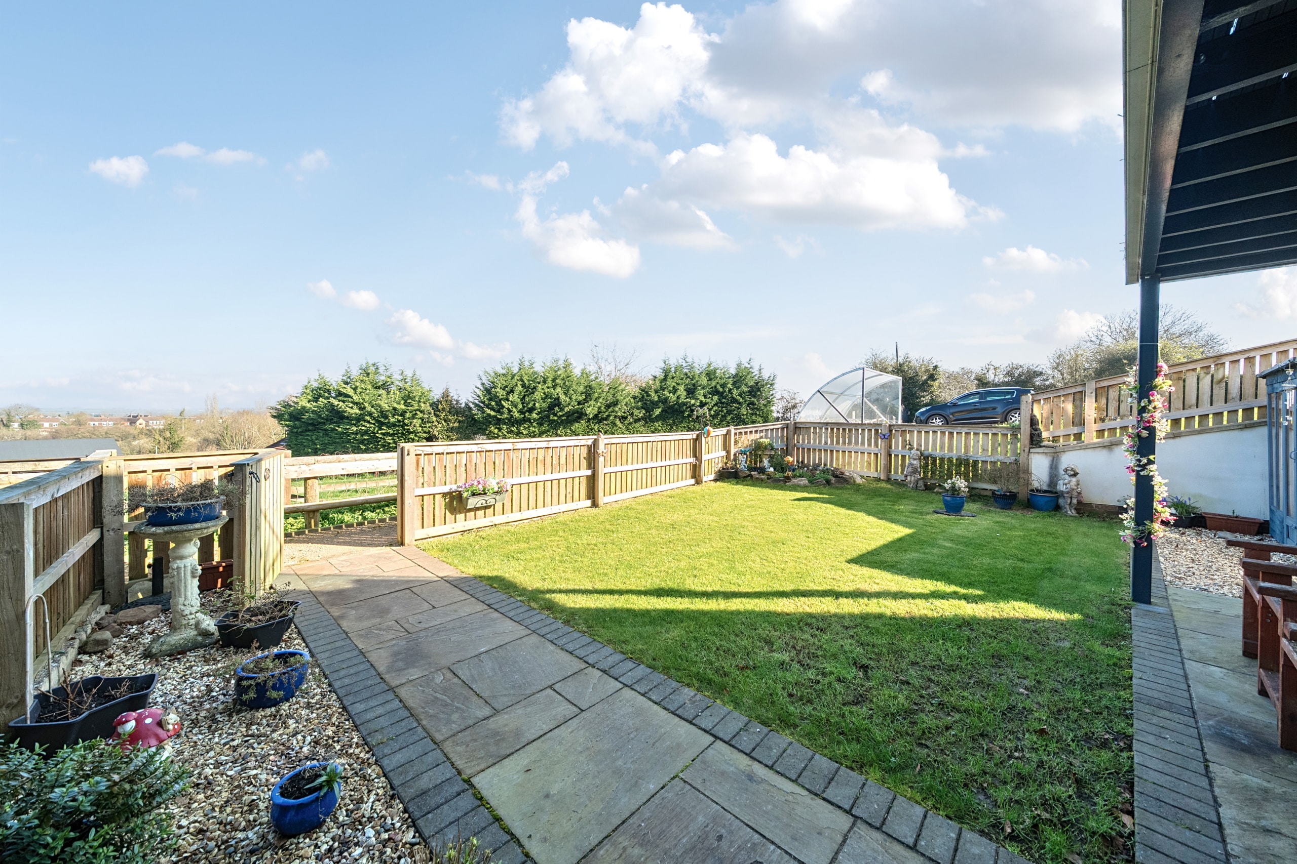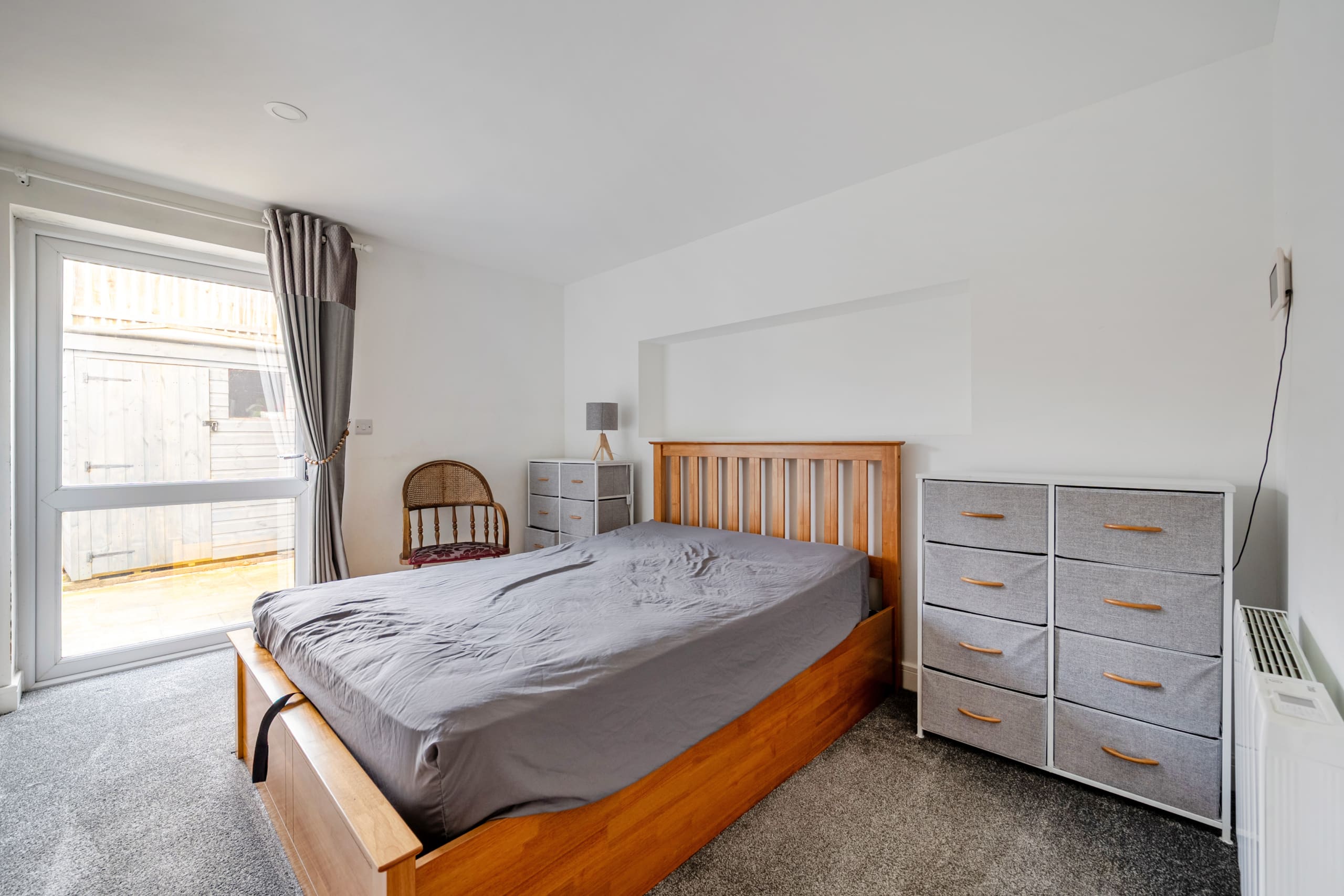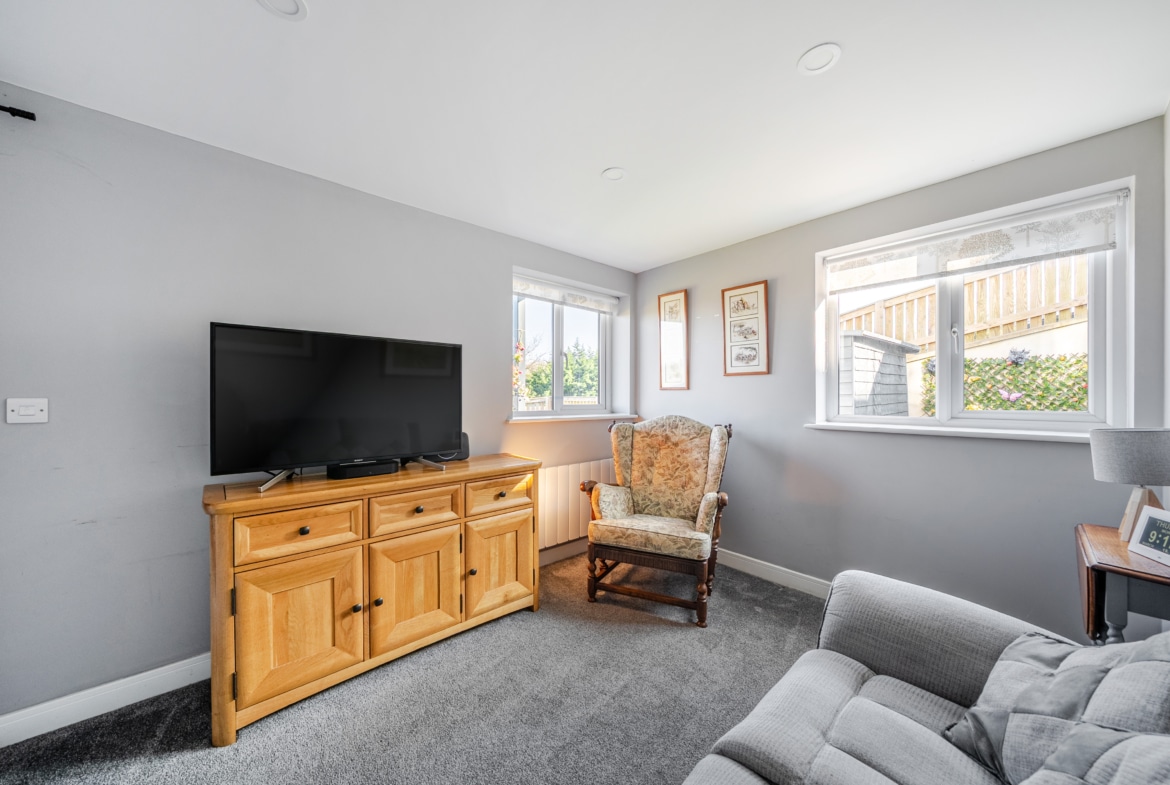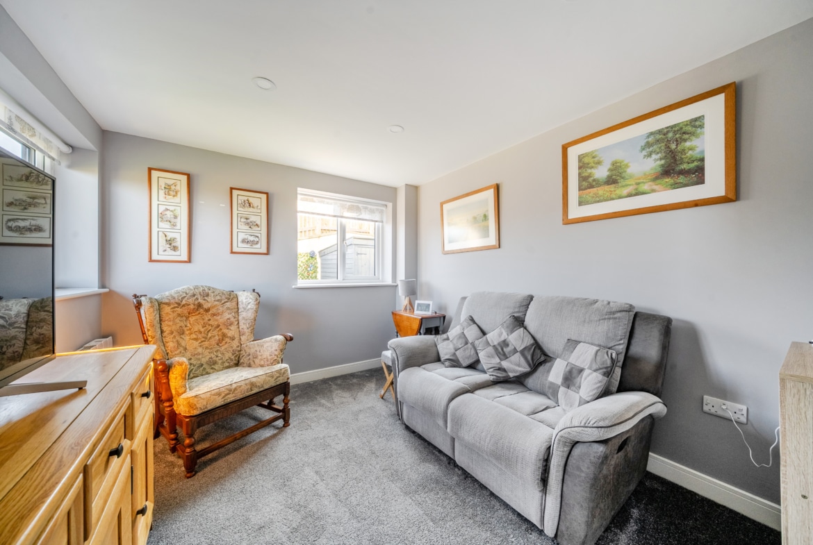 NO CHAIN – A stunning one bedroom modern ground floor home with a beautiful garden and far reaching views. Inside you have a modern fitted kitchen and living area with French Doors onto the rear. To the rear is a double bedroom with door onto the side patio area and a shower room. The property enjoys country views and has an allocated parking space. Viewing Highly recommended.