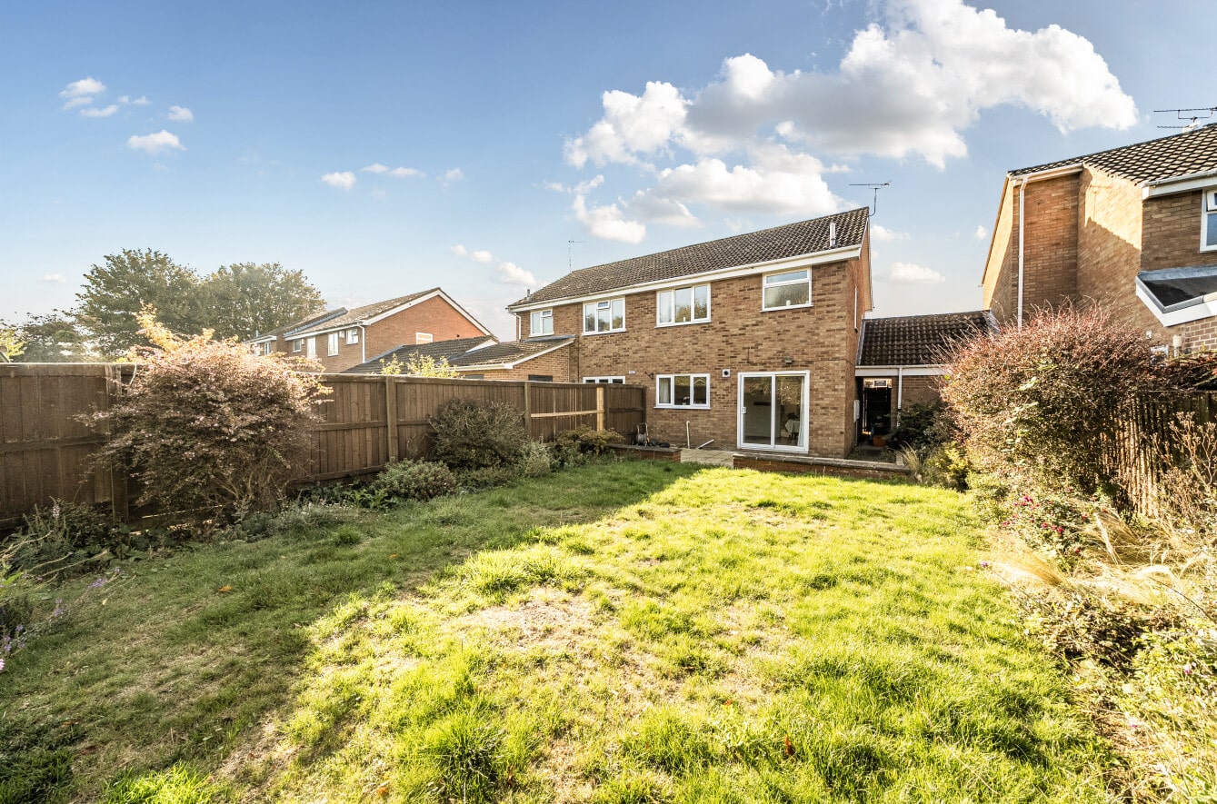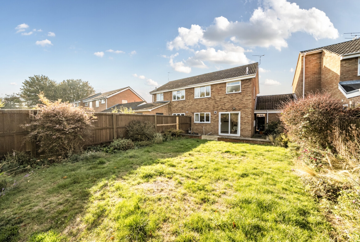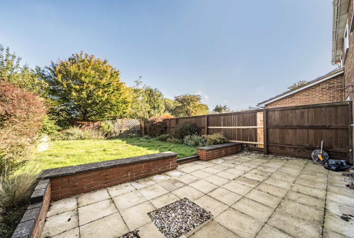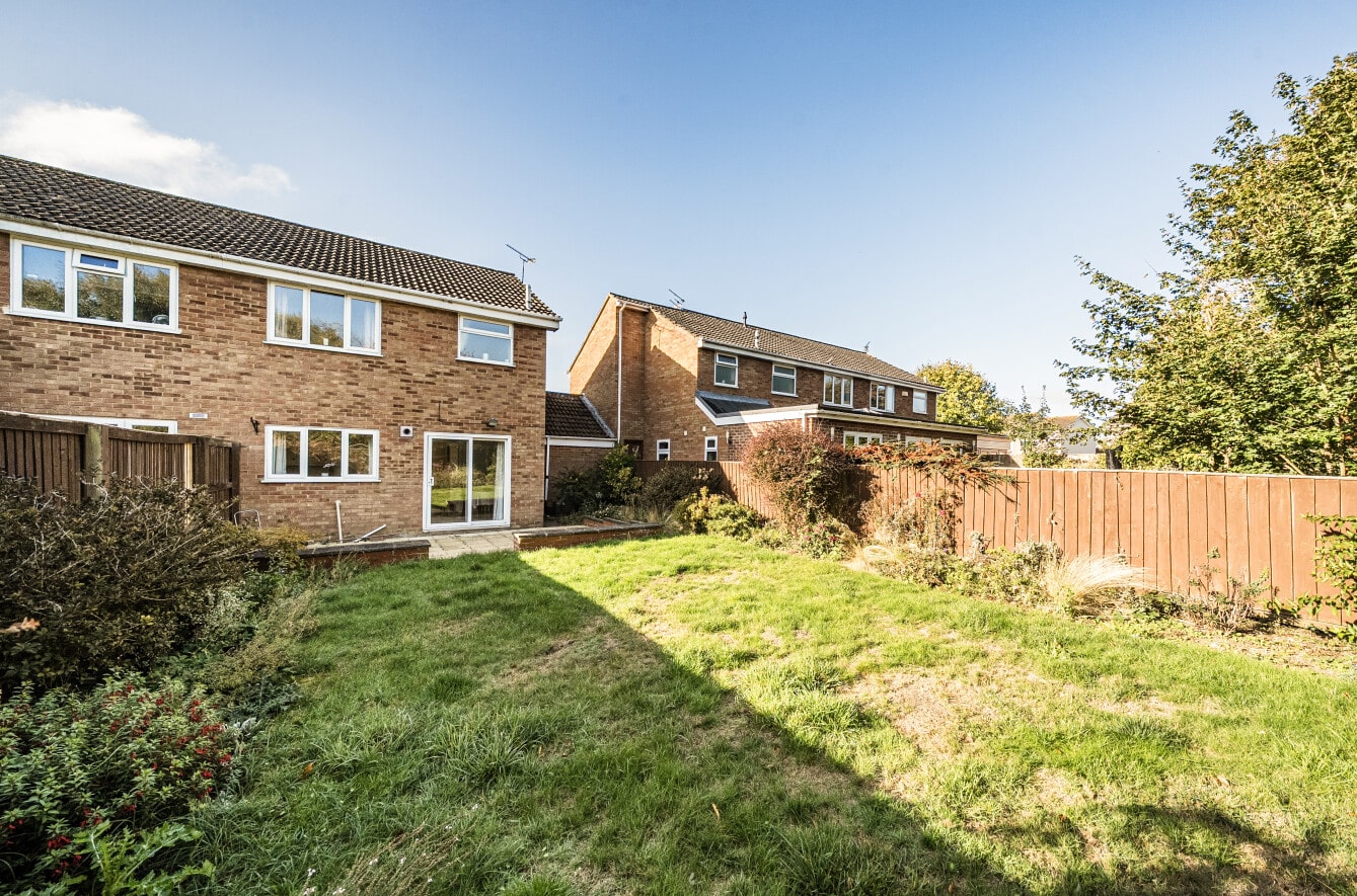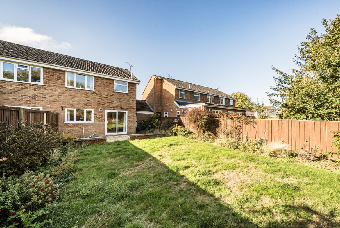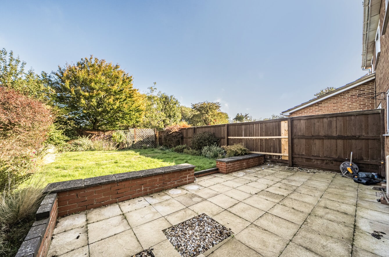 To the rear, you’ll find the open-plan kitchen and dining area – perfect for entertaining or family meals. There’s ample storage throughout, and stylish patio doors lead out to a generous garden featuring both lawn and patio areas, ideal for outdoor dining and play.