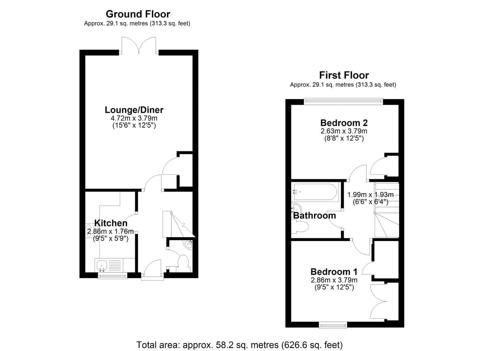 This modern home comprises; Entrance Hallway, Kitchen with some appliances, open plan Living/Dining Room and downstairs WC. To the first floor are two Double Bedrooms and a family Bathroom with shower over bath. Externally the home benefits a larger than average garden which has had a patio recently laid and access to your allocated parking through a side gate.