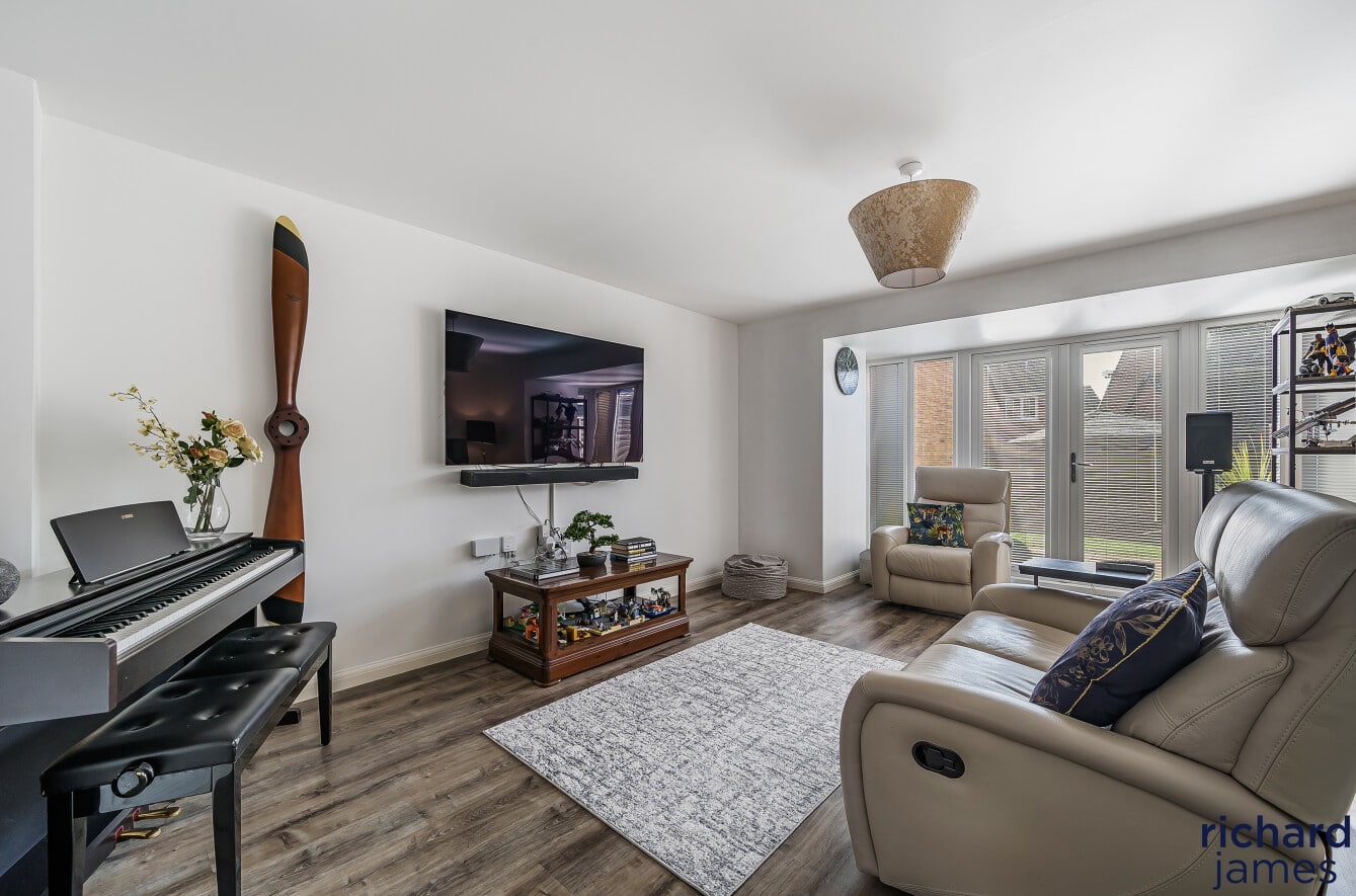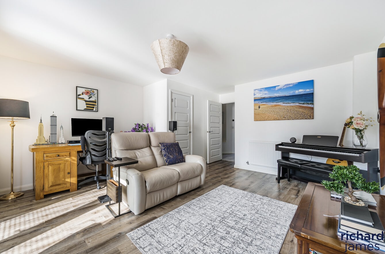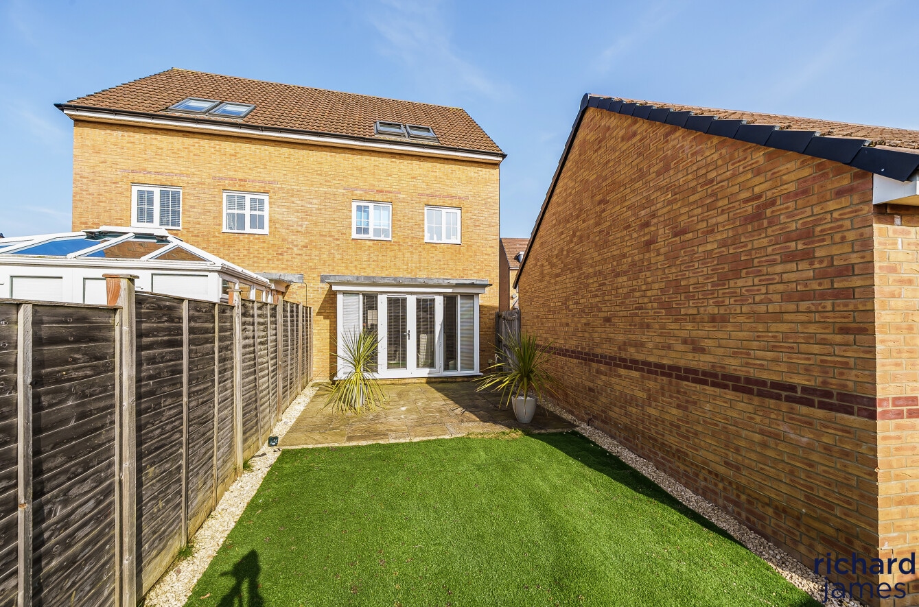 This beautifully presented four-bedroom semi-detached townhouse offers versatile living in a prime location, just a short walk from the town centre and countryside. The home features a modern dining kitchen, spacious living/dining area, three generous first-floor bedrooms with a family bathroom, and a stunning top-floor master suite with a dressing area and en-suite. Outside, there is a sun-filled south-facing garden, a garage, and a driveway. Situated in the desirable Rushes development by Barratt Homes, the property benefits from underfloor heating, double glazing, and gas central heating, with excellent transport links to Swindon, Chippenham, Devizes, and Marlborough.