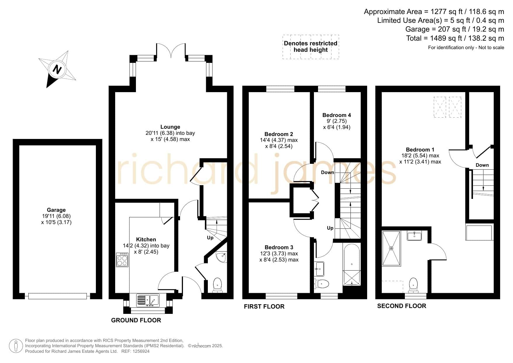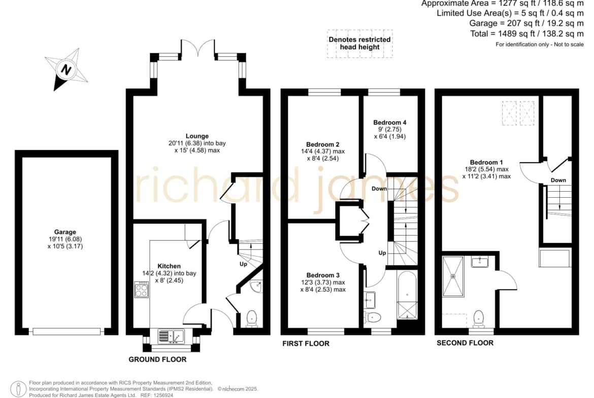 Upon entering, the ground floor features a stylish, modern dining kitchen, a spacious living and dining area, a cloakroom, and ample storage. The first floor hosts three generously sized bedrooms, complemented by a well-appointed family bathroom. The second floor is dedicated to an impressive master suite, complete with a dressing area and a private en-suite.