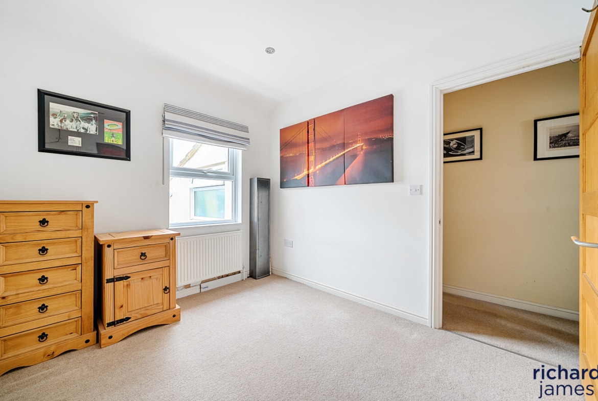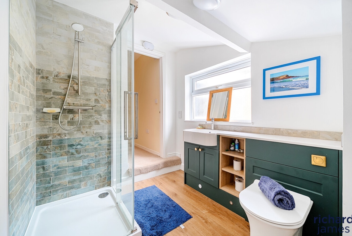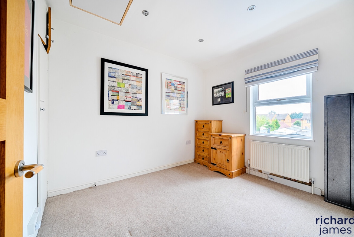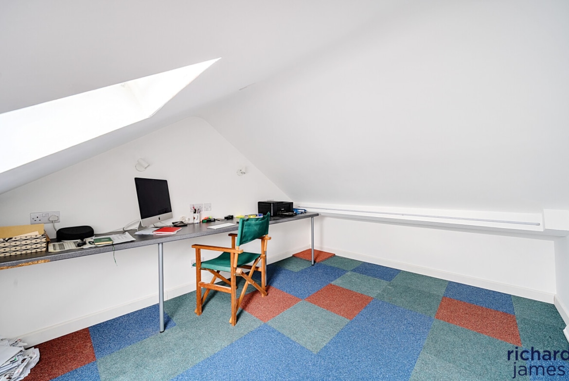 Upstairs, you’ll find two generous double bedrooms and a sleek, modern bathroom with a quality shower unit. A converted loft space provides a versatile area, ideal for a home office or additional storage.