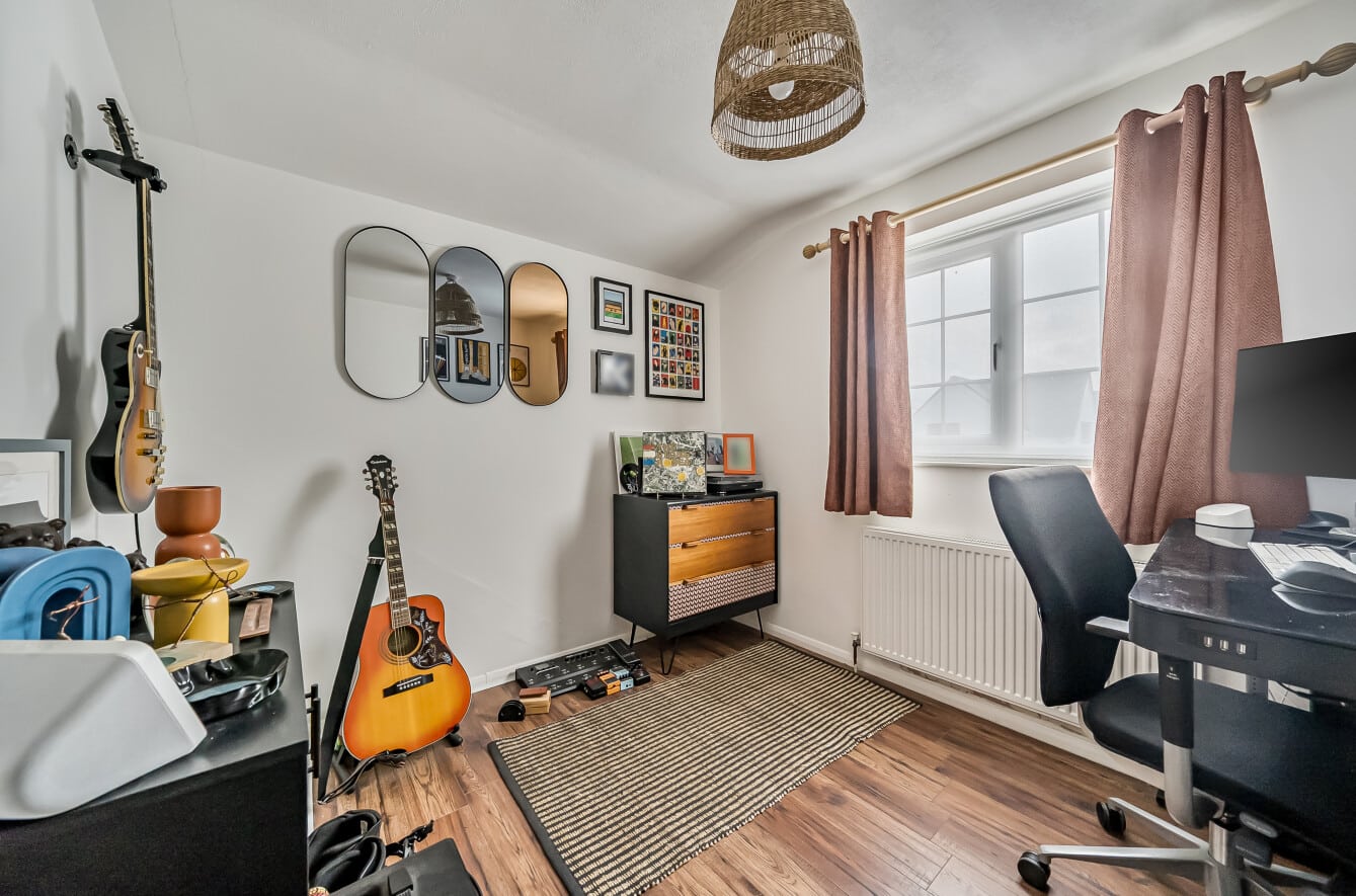 The first floor features a luxurious master suite with balcony, walk-in wardrobe, and ensuite, along with three additional versatile bedrooms and a contemporary family bathroom. The second floor hosts a spacious, light-filled bedroom and another modern bathroom. Ideal for growing families or those who love to entertain, this home offers space, style, and flexibility throughout.