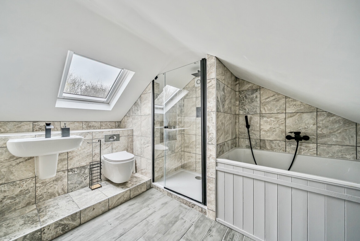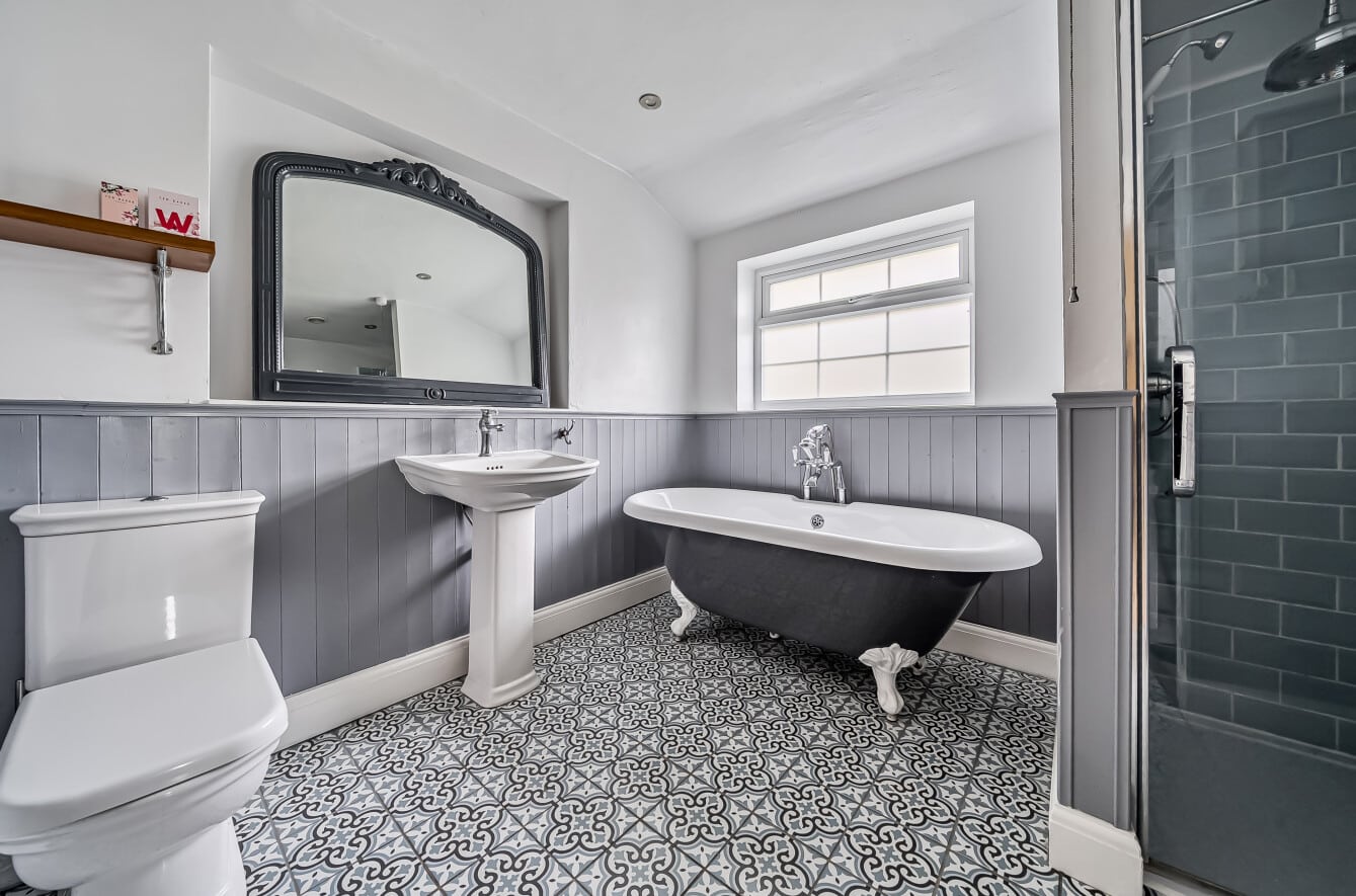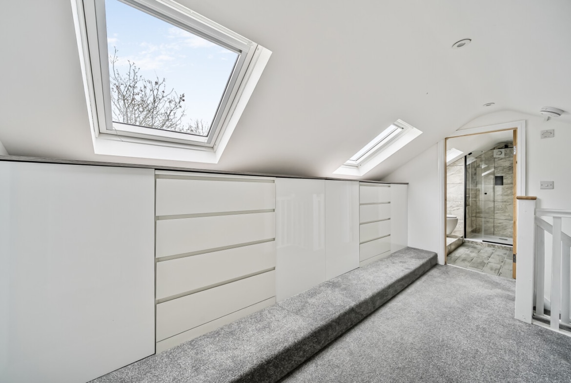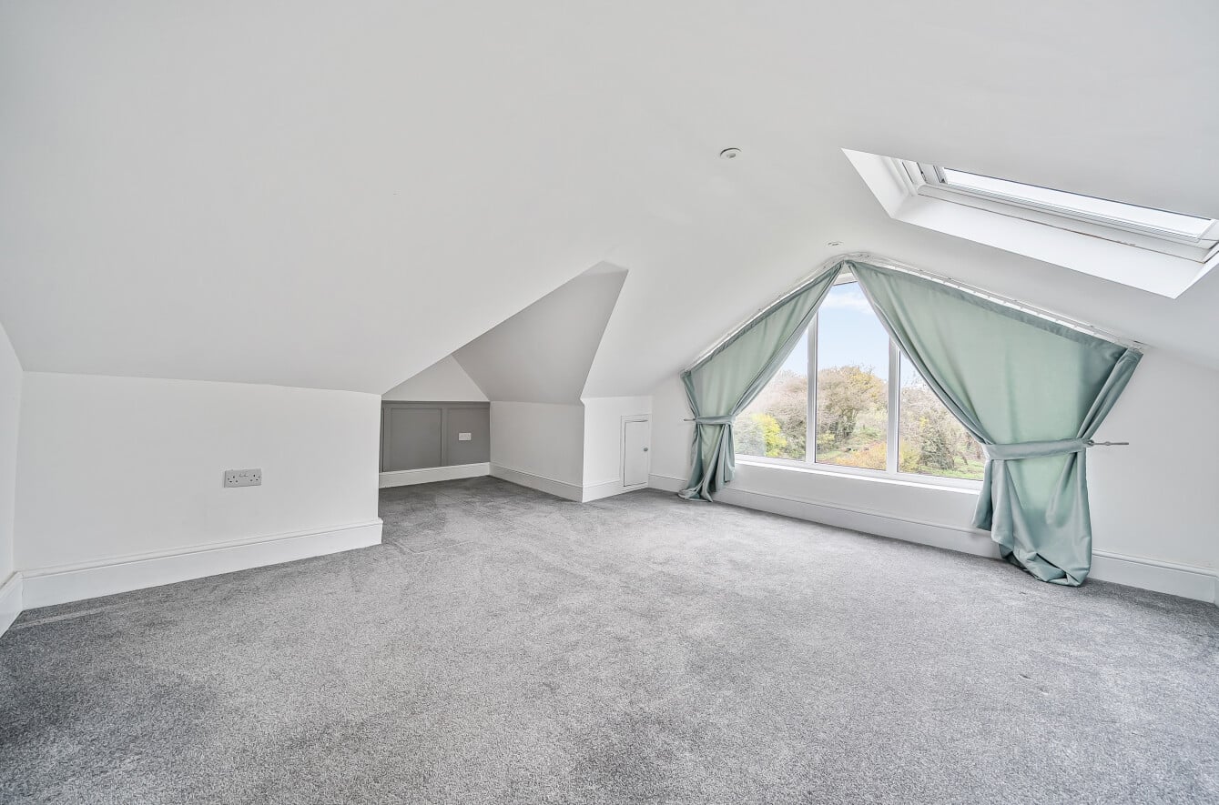 The second floor boasts an exceptionally spacious second bedroom that is flooded with natural light. A further contemporary bathroom ensures comfort and convenience for all.