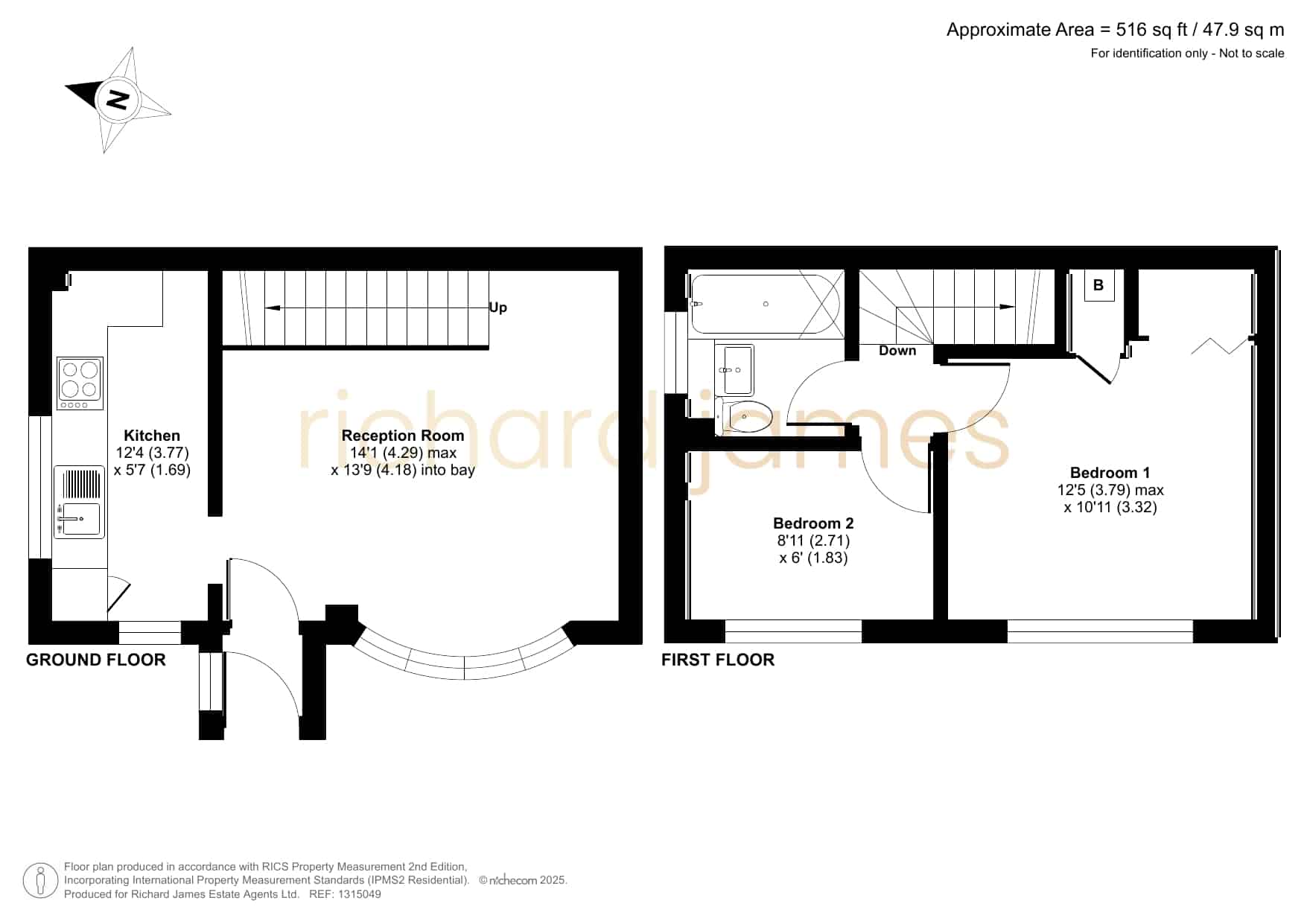 A delightful two-bedroom terraced offering 516 sq. ft. of well-designed living space, this property is set within a peaceful location surrounded by attractive green field views, creating a sense of space and tranquility while still being close to local amenities and transport links. Arranged over two floors, the ground floor comprises a welcoming reception room with a charming bay window that fills the space with natural light, and a modern kitchen fitted with practical storage and appliance space. Upstairs, the property offers a generous main bedroom, a versatile second bedroom that can be used as a study or guest room, and a contemporary bathroom. With its thoughtful layout, character features, and the added appeal of its open green surroundings, this home is an excellent choice for first-time buyers, professionals, or investors seeking a property with both charm and convenience.