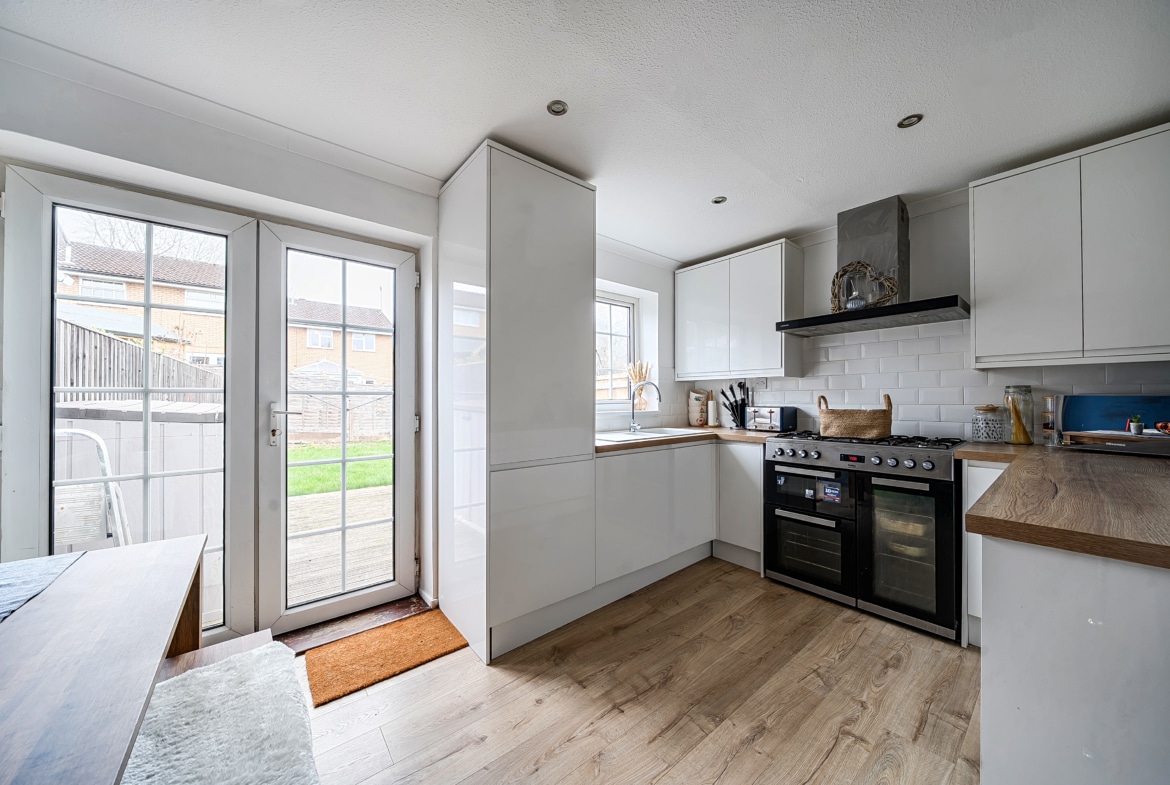 Upon entry you are greeted by a spacious living room to the front, with plenty of space for sofas and further furnishings. The modern fitted kitchen is located to the rear, providing ample space for a dining table and with direct access to the garden.